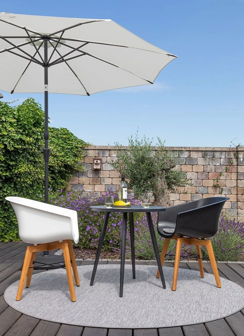 Das Gestell aus Eukalyptusholz (Farbe: Natur) bringt natürliches und warmes Flair auf Ihre Terrasse.