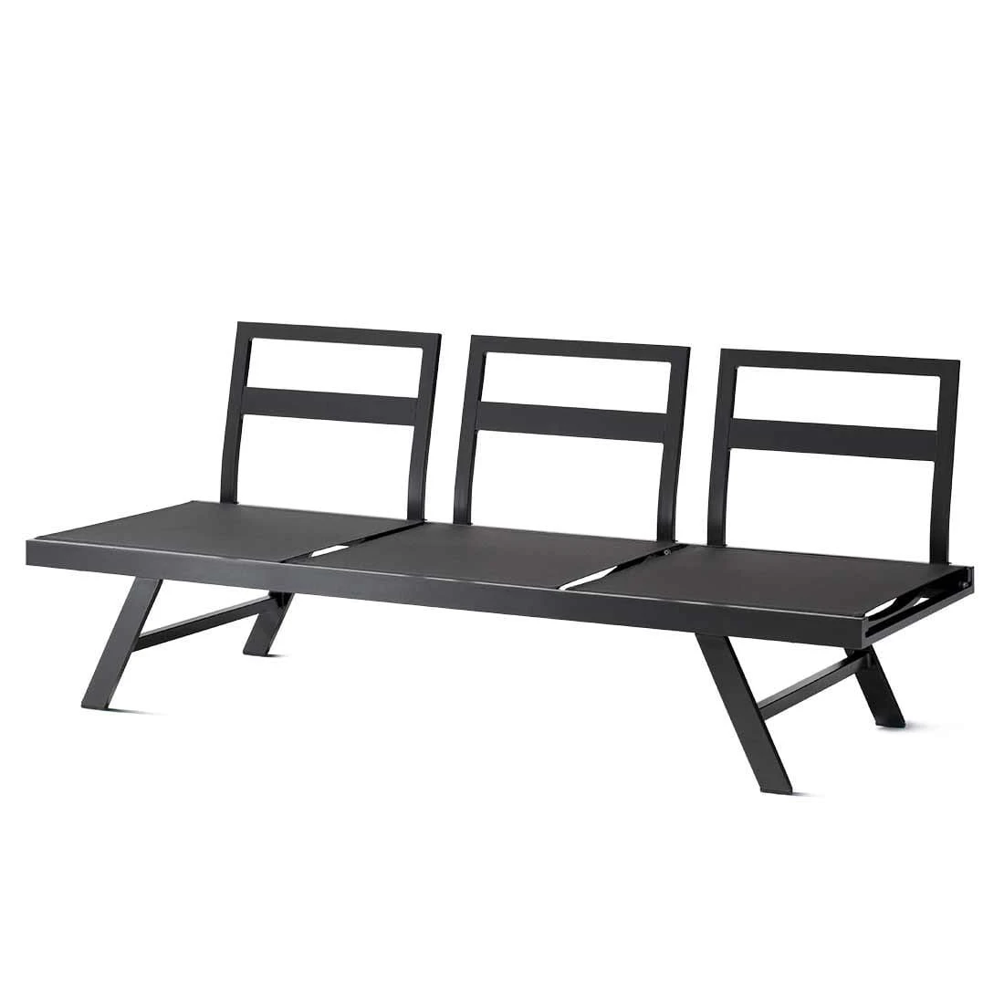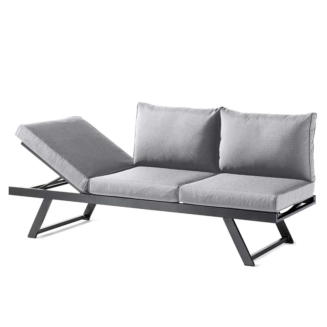 Damit das Daybed optisch ansprechend ist, sind das Gestell und die Sitzfläche im Farbton Eisengrau gehalten. Das Gestell ist aus Aluminium hergestellt. Die Bezüge sind aus dem wasserabweisenden Markenstoff Sunproof gefertigt und damit auch besonders lichtecht und UV-beständig. Die Farbe des Bezugs ist Hellgrau.