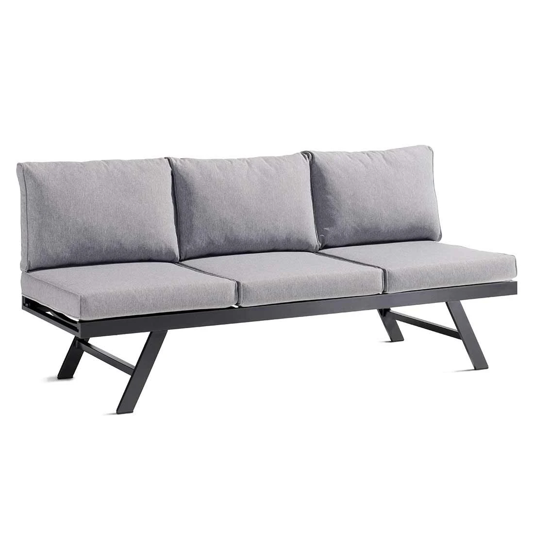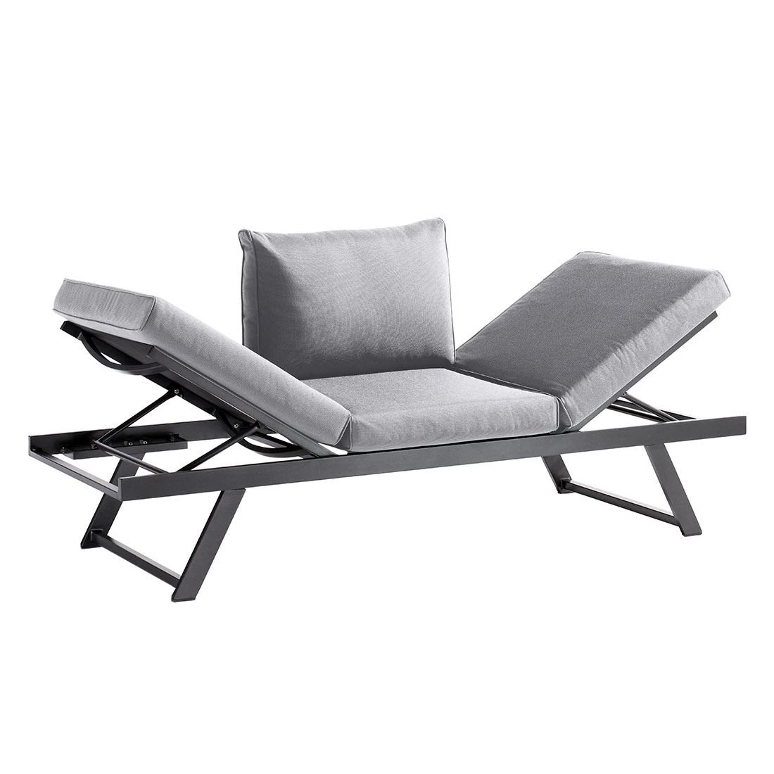 Damit das Gartensofa optisch ansprechend ist, sind das Gestell und die Sitzfläche im Farbton Eisengrau gehalten. Als Gestellmaterial hat der Hersteller wertiges Aluminium gewählt. Die Bezüge sind aus dem wasserabweisenden Markenstoff Sunproof gefertigt und damit auch besonders gut vor dem Ausbleichen geschützt. Die Farbe des Bezugs ist Hellgrau.