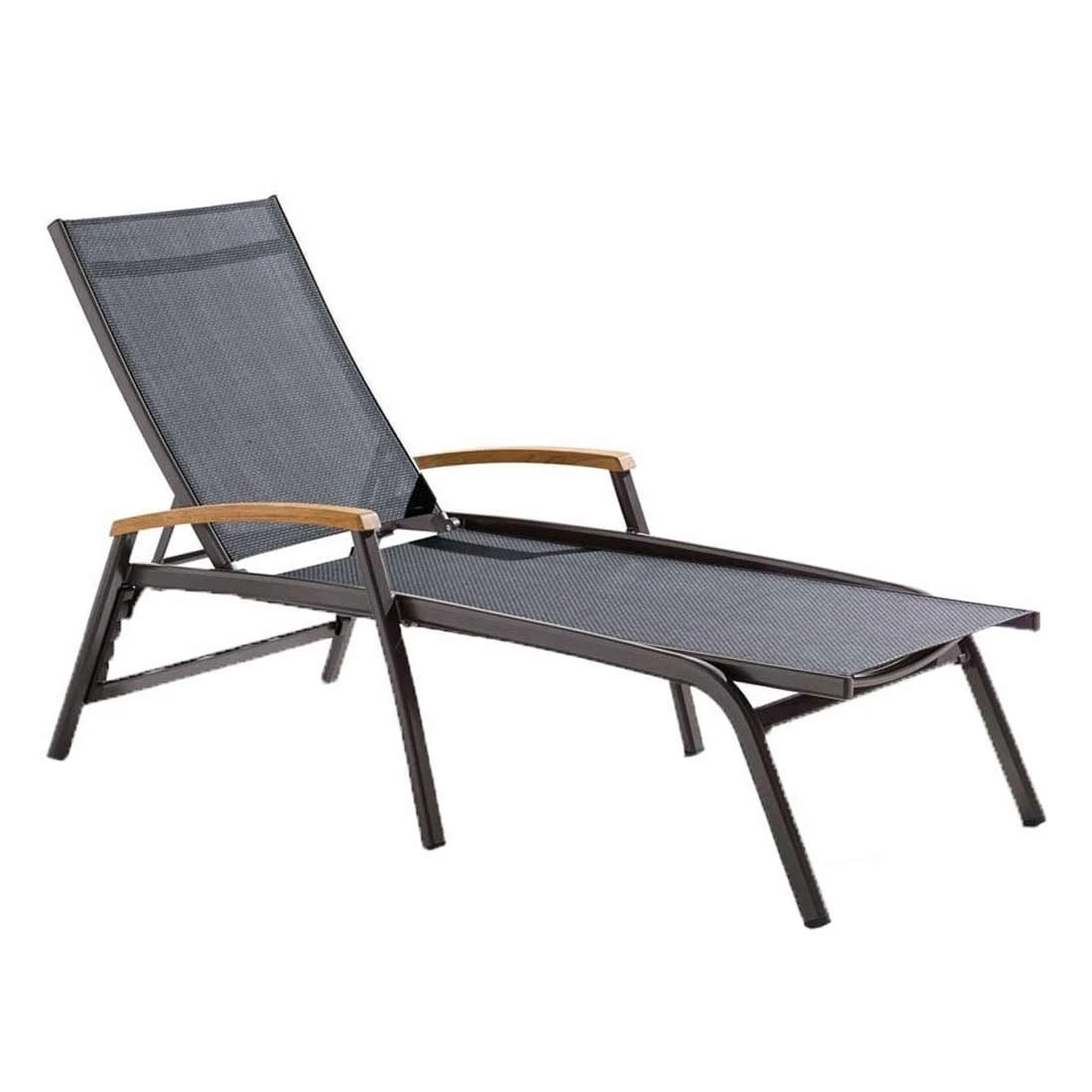 Für die Herstellung des Gestells wird hochwertiges und wetterfestes Aluminium verwendet. Für eine attraktive Optik ist das Gestell im Farbton Eisengrau (Anthrazit) gehalten. Für die Bespannung der Sitzfläche wird hochwertiges Textilene verwendet. Es zeichnet sich durch eine hohe Robustheit gegenüber Hitze und Frost aus und ist leicht zu reinigen. Die Farbgestaltung der Sitzfläche in Grau ist überaus ansprechend.