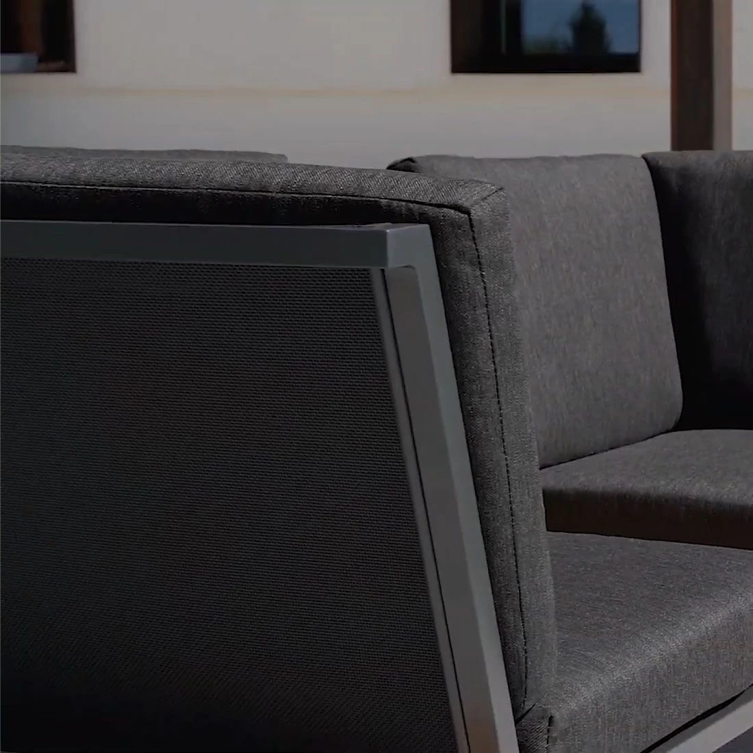Damit die Dininglounge optisch ansprechend ist, sind das Gestell und die Tischplatte im Farbton Eisengrau (Anthrazit) gehalten. Als Gestellmaterial hat der Hersteller qualitativ hochwertiges Aluminium gewählt. Die Sitzfläche ist aus dem wasserabweisenden Markenstoff Sunproof gefertigt und damit auch besonders lichtecht und UV-beständig. Die robuste Tischplatte aus Polytec überzeugt mit ihren Materialeigenschaften. Die Platte ist wetter-, kälte- und kratzfest und damit der perfekte Begleiter für Ihren Outdoor-Bereich.