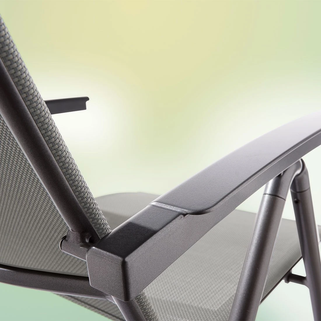 Durch die praktische Klappfunktion ist der Klappsessel platzsparend zu verstauen. Damit Sie sich bequem zurücklehnen können, stellen Sie Ihre Wunschposition ganz einfach mittels Rasterschiene an der Rückenlehne ein.