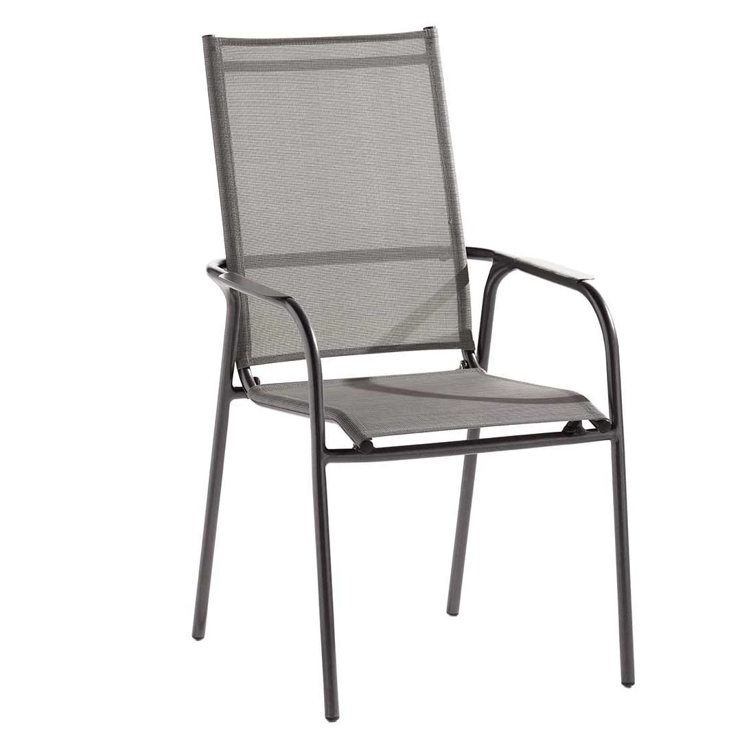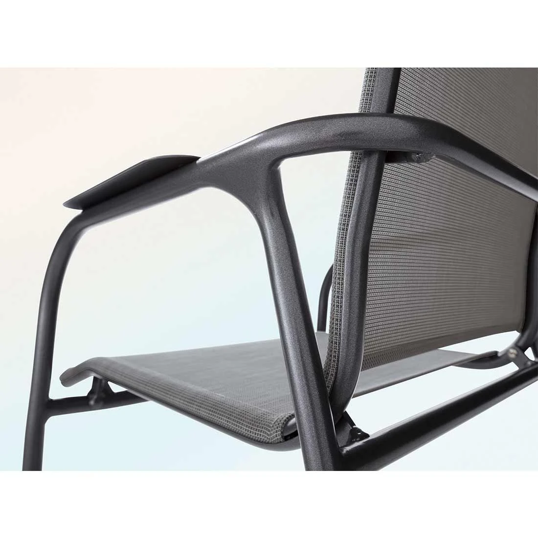 Für die Herstellung des Gestells wird hochwertiges und wetterfestes Aluminium verwendet. Für die Bespannung der Sitzfläche verlässt sich der Hersteller auf hochwertiges Textilene. Es zeichnet sich durch eine hohe Robustheit gegenüber Hitze und Frost aus und ist leicht zu reinigen. Für ein perfekt stimmiges Gesamtbild sorgt die einheitliche Farbgebung in stilvollem Hellgrau.