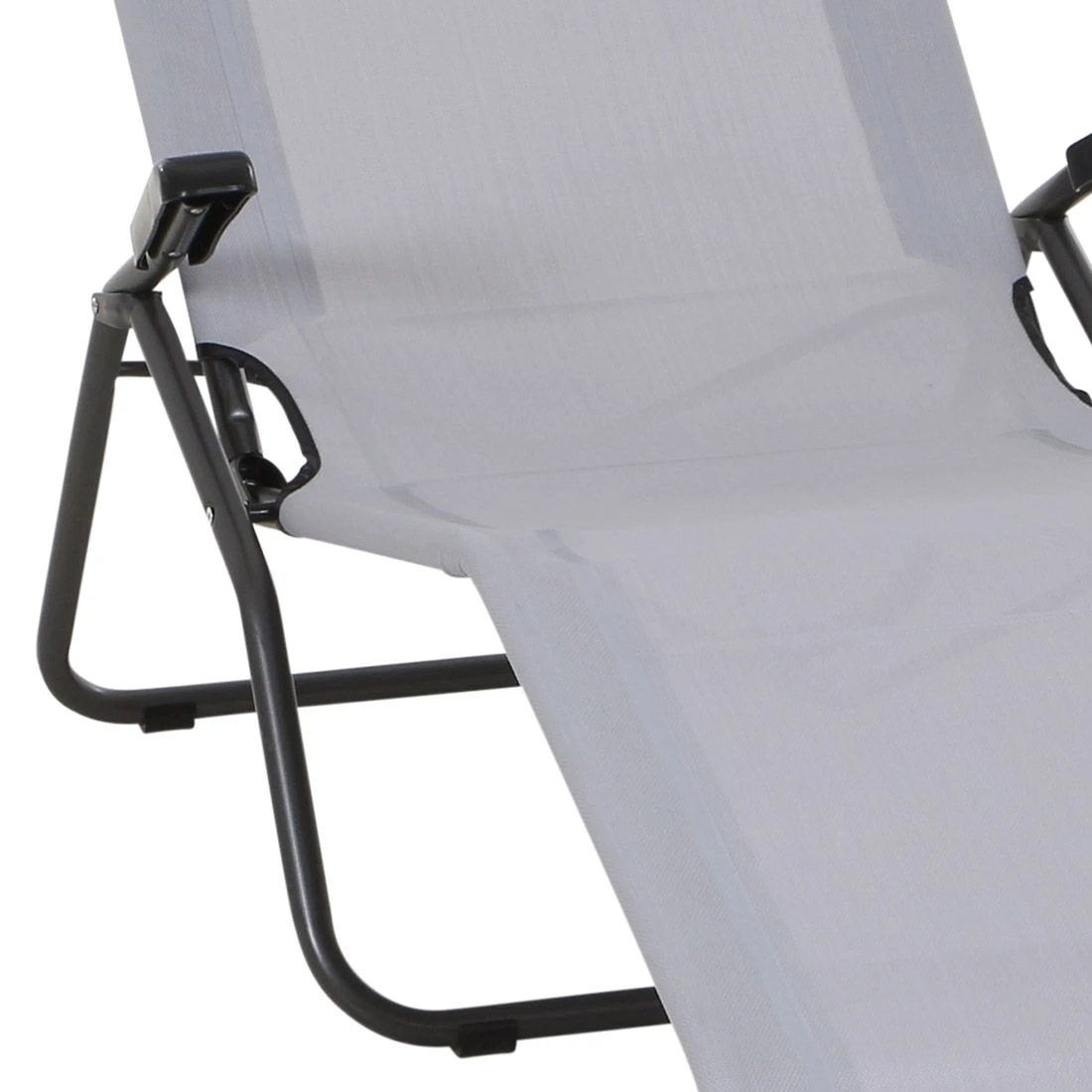 Das Gestell wird aus Stahl (Farbe: Anthrazit) gefertigt und sorgt damit für stabilen Halt beim Sitzen. Die Sitzfläche wird mit Textilene in der Farbe Hellgrau bespannt. Dieses Material ist reiß- und wetterfest und zeichnet sich durch eine hohe Beständigkeit gegenüber Hitze und Frost aus. Darüber hinaus ist Textilene leicht zu säubern.