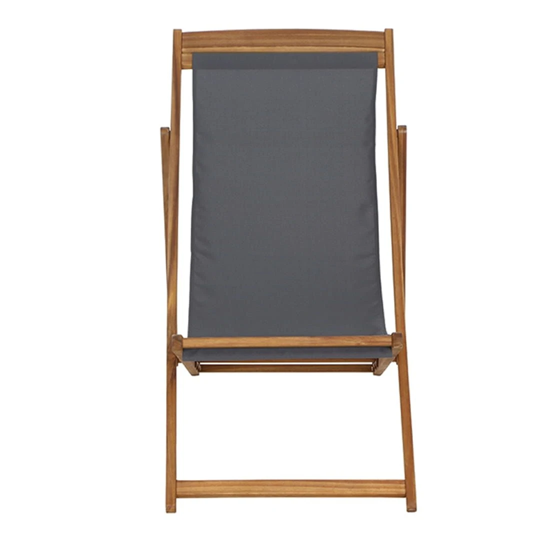 Das Gestell wird aus Akazienholz gefertigt. Die hohe Dichte und die gute Wetterfestigkeit des Materials machen das Gestell besonders robust. Farblich ist dieses in Akazie gehalten. Die Sitzfläche des Liegestuhls wird mit Polyester bespannt. Die Farbgestaltung der Sitzfläche in Grau ist überaus ansprechend.