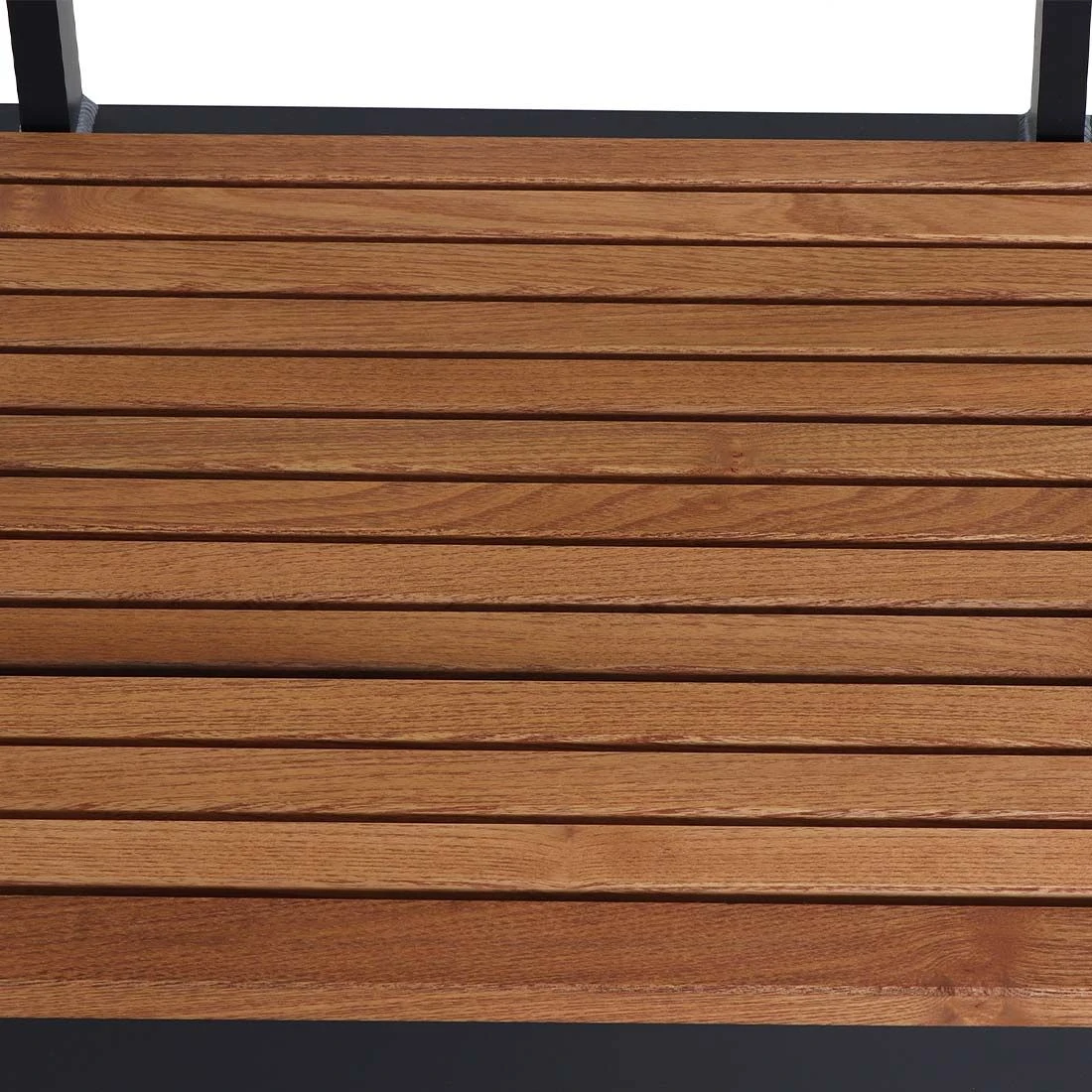 Das Gestell besteht aus pflegeleichtem und wetterfestem Aluminium. Für eine attraktive Optik ist das Gestell im Farbton Graphit gehalten. Liebhaber natürlicher Materialien werden große Freude an der Sitzfläche aus Robinienholz haben. Die Sitzfläche ist in ansprechendem Natur gehalten.