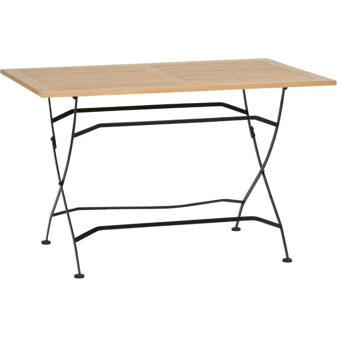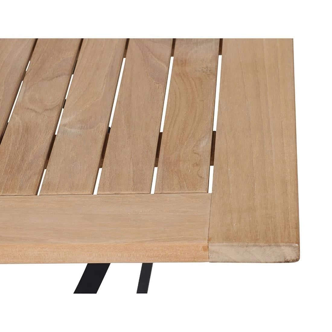 Für das Gestell wird robuster Stahl verwendet. Farblich ist das Gestell in Schwarz gehalten. Als Material für die Tischplatte wird das edle Hartholz Teak verwendet. Die Maserung des Holzes und der angenehme Farbton integrieren sich hervorragend in jegliche Arten der Garten- und Balkongestaltung und verströmen eine einzigartig natürliche Atmosphäre. Dass ein Möbelstück auch ein Hingucker sein kann, beweist dieses Modell mit seinem außergewöhnlichen Gestell in X-Form. Mit der rechteckigen Form lässt sich der Biergartentisch platzsparend in Ecken oder an Häuserwänden aufstellen.