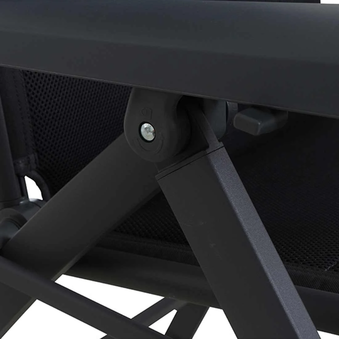 Das Gestell wird aus Aluminium in der Farbe Anthrazit gefertigt. Das geringe Eigengewicht des Materials macht die Relaxliege zu einem robusten, aber dennoch leicht zu transportierenden Sitzmöbel auf Ihrer Terrasse.