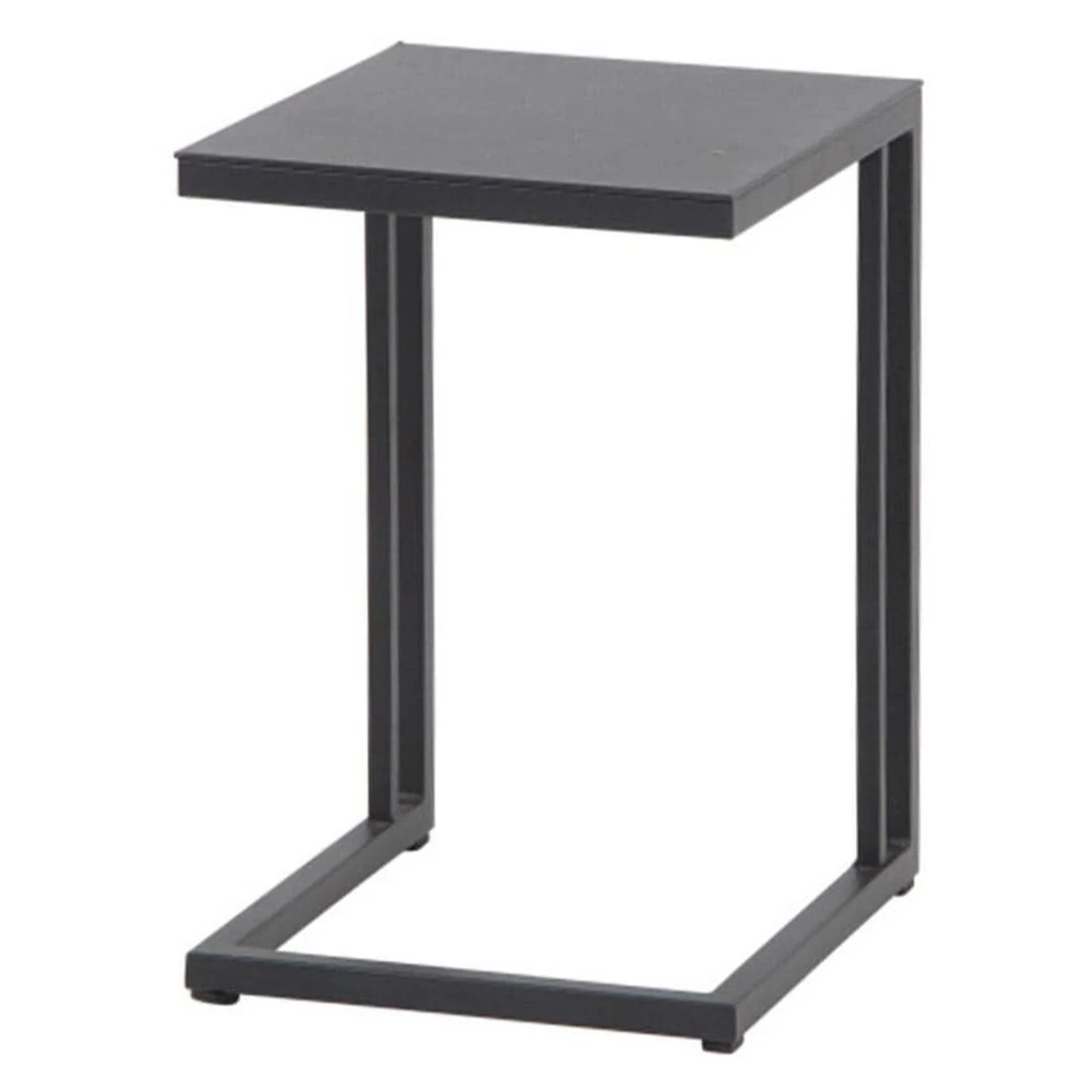 Der Beistelltisch ist komplett aus Aluminium gefertigt und gibt so ein charmantes, einheitliches Bild auf der Terrasse ab. Farblich sind Gestell und Tischplatte einheitlich gestaltet und begeistern in Anthrazit. Das robuste Kufengestell lässt sich hervorragend mit modernen Freischwingern und anderen Kufenmöbeln kombinieren. Die Form des Beistelltischs ist klassisch rechteckig gehalten.