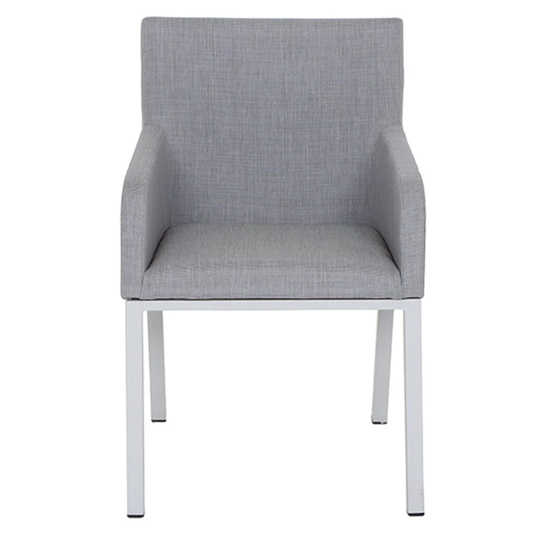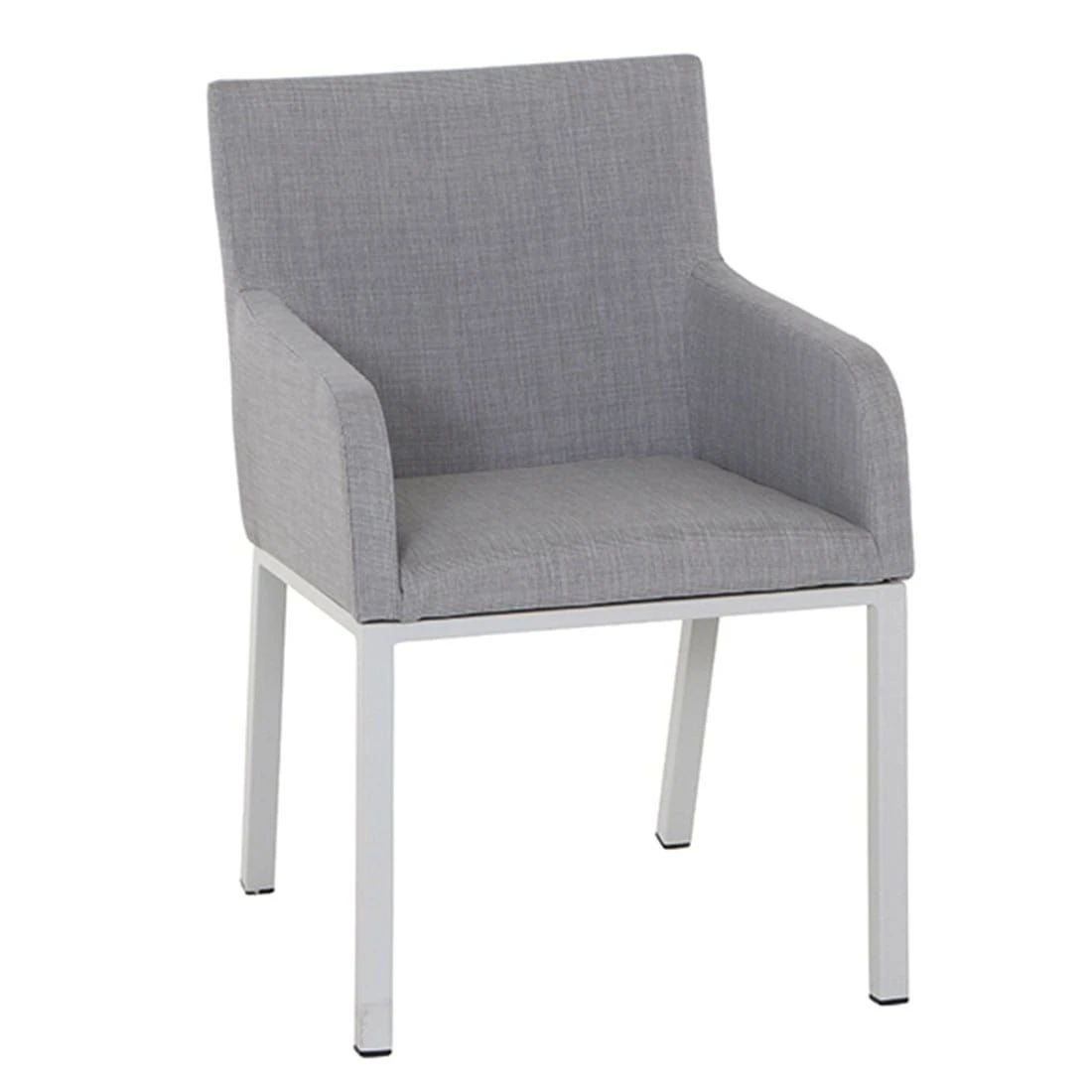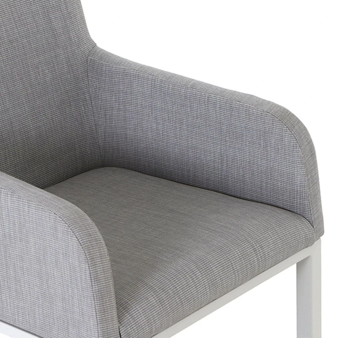Das Gestell wird aus Aluminium gefertigt. Das geringe Eigengewicht des Materials macht den Gartensessel zu einem robusten, aber dennoch leicht zu transportierenden Sitzmöbel auf Ihrer Terrasse. Für eine attraktive Optik ist das Gestell im Farbton Weiß-Grau matt gehalten. Ein weiterer Pluspunkt des Gartensessels ist die Bespannung mit Textilene. Dieser Bezugsstoff überzeugt durch eine hohe Robustheit gegenüber Hitze und Frost und ist leicht zu reinigen. Die Sitzfläche ist in ansprechendem Schiefergrau gehalten.