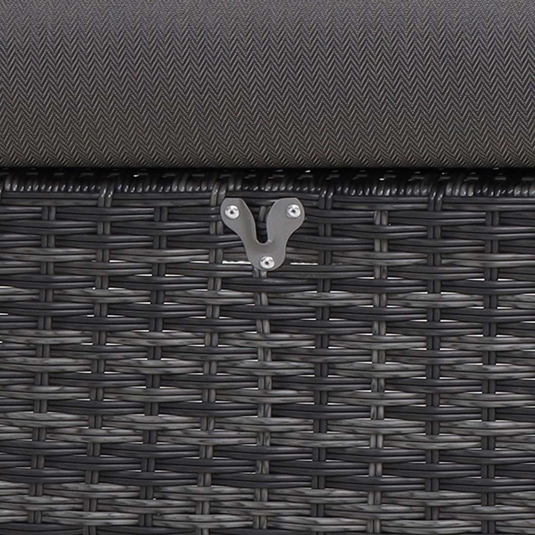 Das Gestell, das mit hochwertigem Gardino®-Geflecht umflochten ist, bringt ein exklusives Flair auf Ihre Terrasse. Dieses Material zeichnet sich durch eine hohe Wetterbeständigkeit aus.