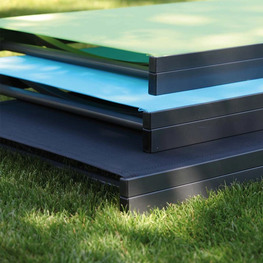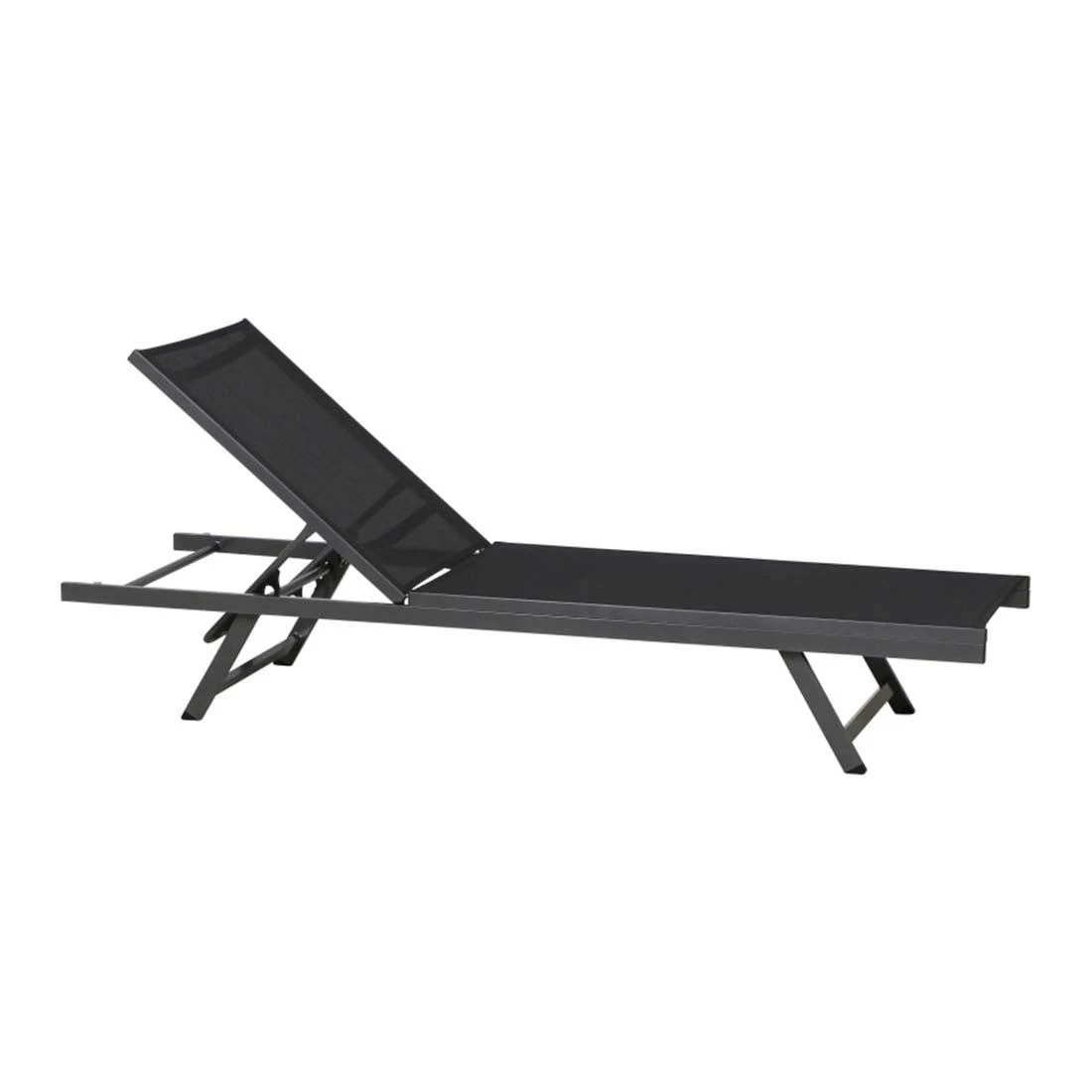 Das Gestell besteht aus pflegeleichtem und wetterfestem Aluminium. Farblich ist dieses in Anthrazit gehalten. Die Sitzfläche wird mit Textilene bespannt. Dieses Material ist reiß- und wetterfest und zeichnet sich durch eine hohe Beständigkeit gegenüber Hitze und Frost aus. Darüber hinaus ist Textilene leicht zu säubern. Die Sitzfläche ist in ansprechendem Schwarz gehalten.
