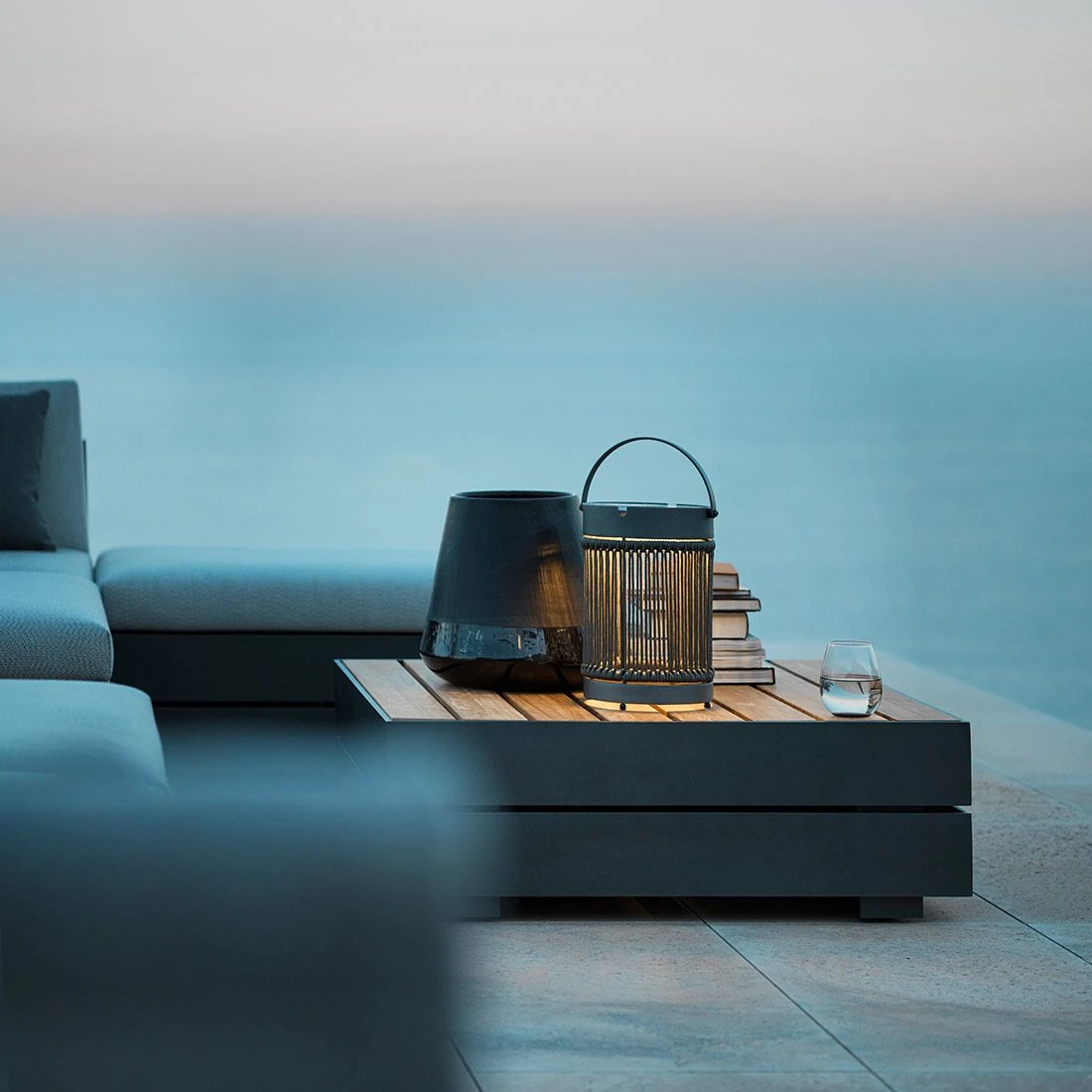 Der schöne Solpuri Beistelltisch Boxx ist individuell einsetzbar und bietet Platz zum Abstellen von Gläsern oder anderen Gegenständen auf der Terrasse.
