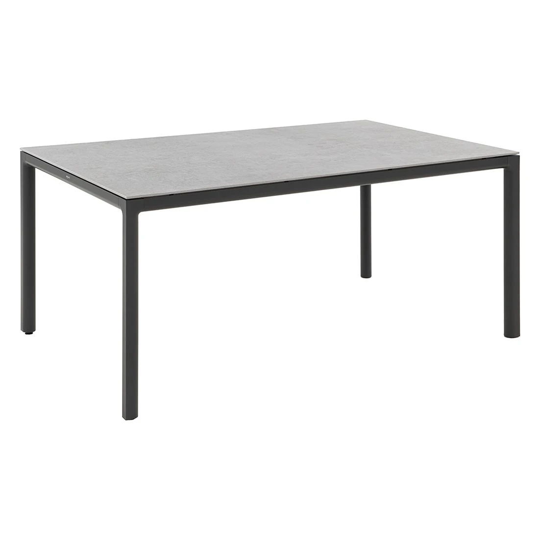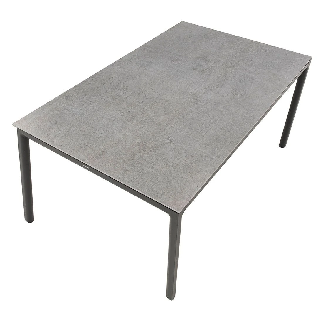 Mit seinem Gestell-Material Aluminium zählt der Gartentisch Soft zu den modernen Tischmodellen, die sich im Garten ohne Aufwand aufstellen und bewegen lassen. Optisch ist das Gestell in Anthrazit gehalten. Die Tischplatte besteht aus Dekton. Dekton ist eine Mischung aus 20 natürlichen Mineralien. Bei der Herstellung von Dekton kommt eine besondere Technologie zum Einsatz, die in der Lage ist, mineralische Partikel so zu sintern, dass sie sich miteinander verbinden. Das Ergebnis: eine langlebige, sehr robuste und für jeden Einsatzbereich geeignete Tischplatte. Für ein stimmiges Gesamtbild erscheint die Platte in der Farbe Kreta. Klassisch aus vier Tischbeinen besteht das Gestell des Tisches. Die rechteckige Form ermöglicht es Ihnen, den Gartentisch in Ecken und an Häuserwänden platzsparend einzusetzen.