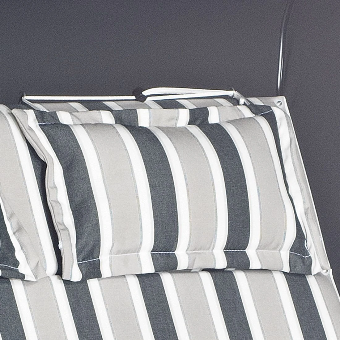 Die Bezüge des Strandkorbs bestehen aus Strukturpolyester-Gewebe. Das Material begeistert mit der angenehmen Oberflächenstruktur und einer herausragenden Witterungsbeständigkeit. Der Strandkorb selbst besteht aus Fichtenholz sowie Kunststoffgeflecht. Beides harmoniert hervorragend miteinander. Das Grundgerüst des Strandkorbs ist in Schwarz Matt gehalten. Darüber hinaus begeistert der Strandkorb Konsul mit seinem Kunststoffgeflecht im Farbton Schwarz Matt.