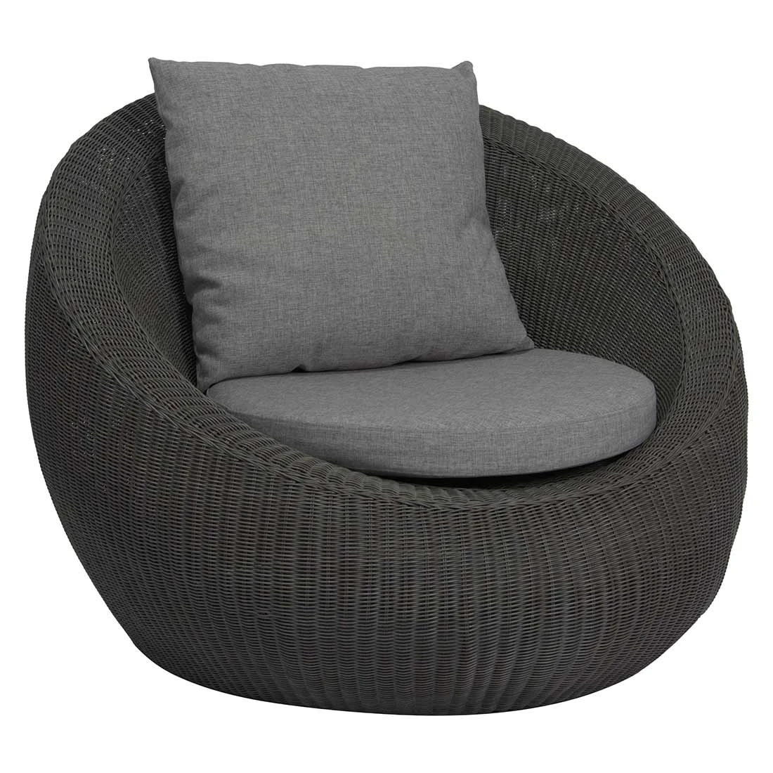 Das Gestell besteht aus pflegeleichtem und wetterfestem Aluminium in der Farbe Basaltgrau. Ein Material, das mit seiner Robustheit überzeugt. Das Gestell, das mit hochwertigem Polyrattan umflochten ist, bringt ein exklusives Flair auf Ihre Terrasse. Dieses Material zeichnet sich durch eine hohe Wetterbeständigkeit aus. Die Sitzfläche ist mit einem outdoortauglichen und komfortablen Stoff bezogen. Auch wenn dieser Wind und Wetter trotzt, empfehlen wir, die abnehmbaren Kissen bei länger andauernder Feuchtigkeit in der Wohnung bzw. in Ihrem Haus zu lagern.