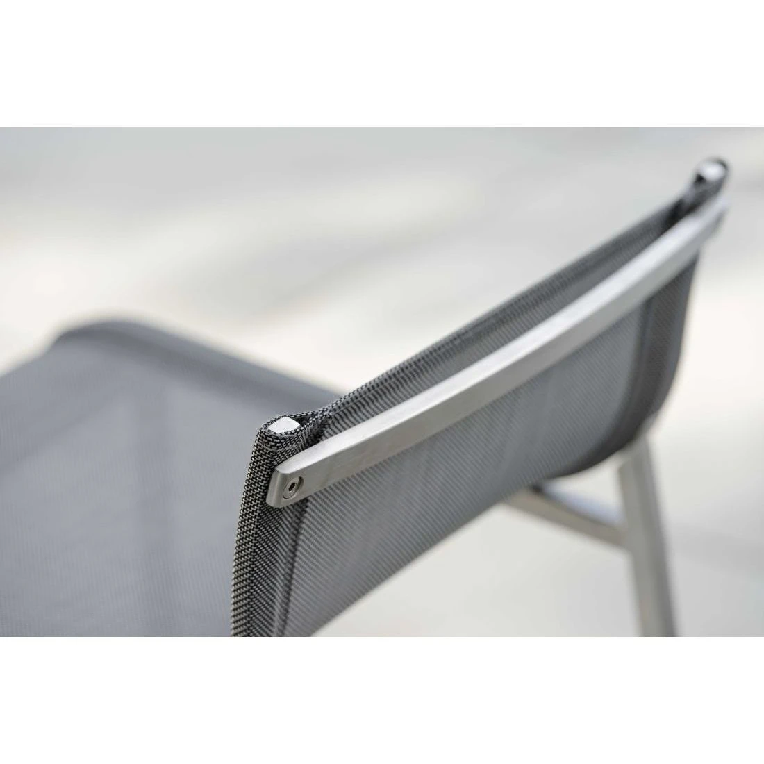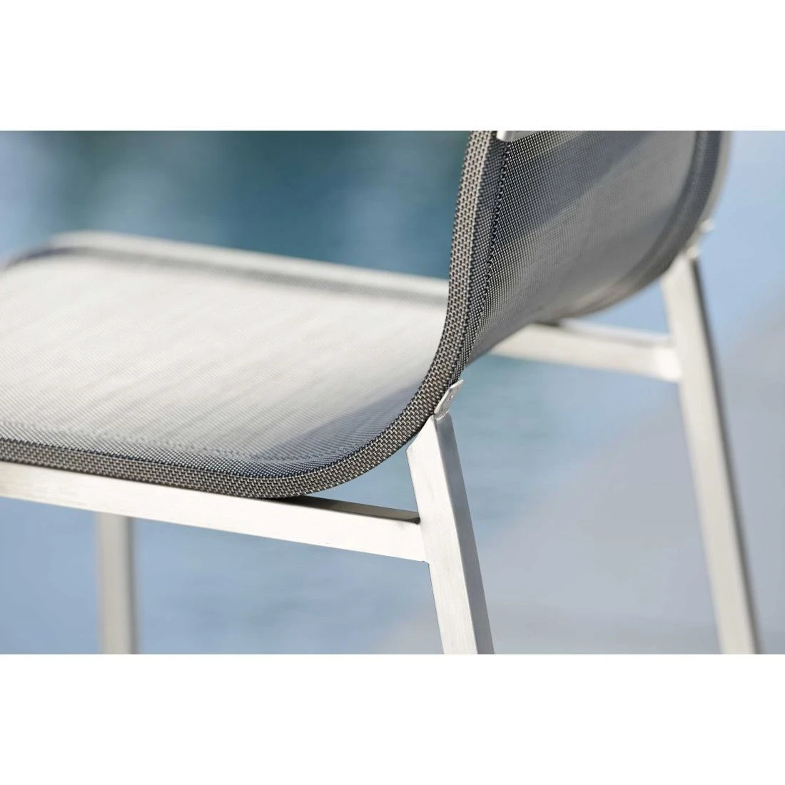 Das Gestell des Garten-Barstuhls besteht aus hochwertigem und pflegeleichtem Edelstahl. Neben seiner ansprechenden Optik bietet dieses Material auch eine hohe Stabilität. Für eine attraktive Optik ist das Gestell im Farbton Silber gehalten. Ein weiteres Highlight des Garten-Barstuhls ist die Bespannung mit Textilene. Dieser Bezugsstoff überzeugt durch eine hohe Robustheit gegenüber Hitze und Frost und ist leicht zu reinigen. Die Sitzfläche ist in ansprechendem Silbergrau gehalten.