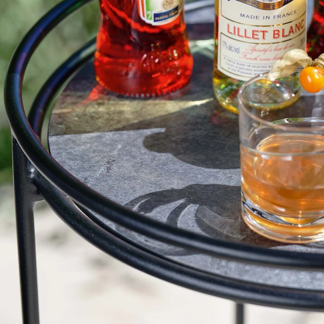 Der komfortable Stern Beistelltisch Charles ist vielseitig einsetzbar und bietet Platz zum Abstellen von Getränken und Knabbereien im Garten.