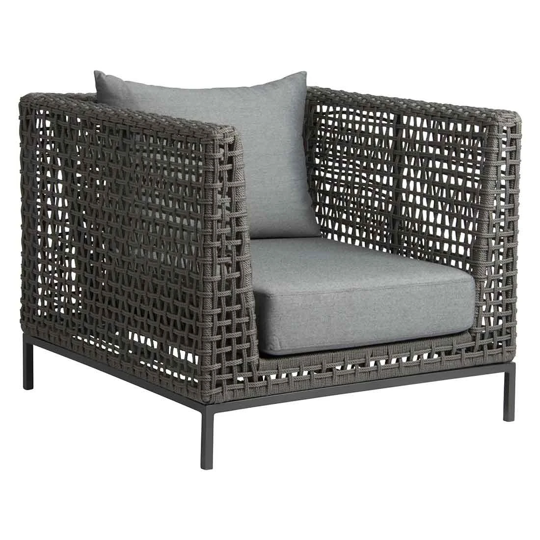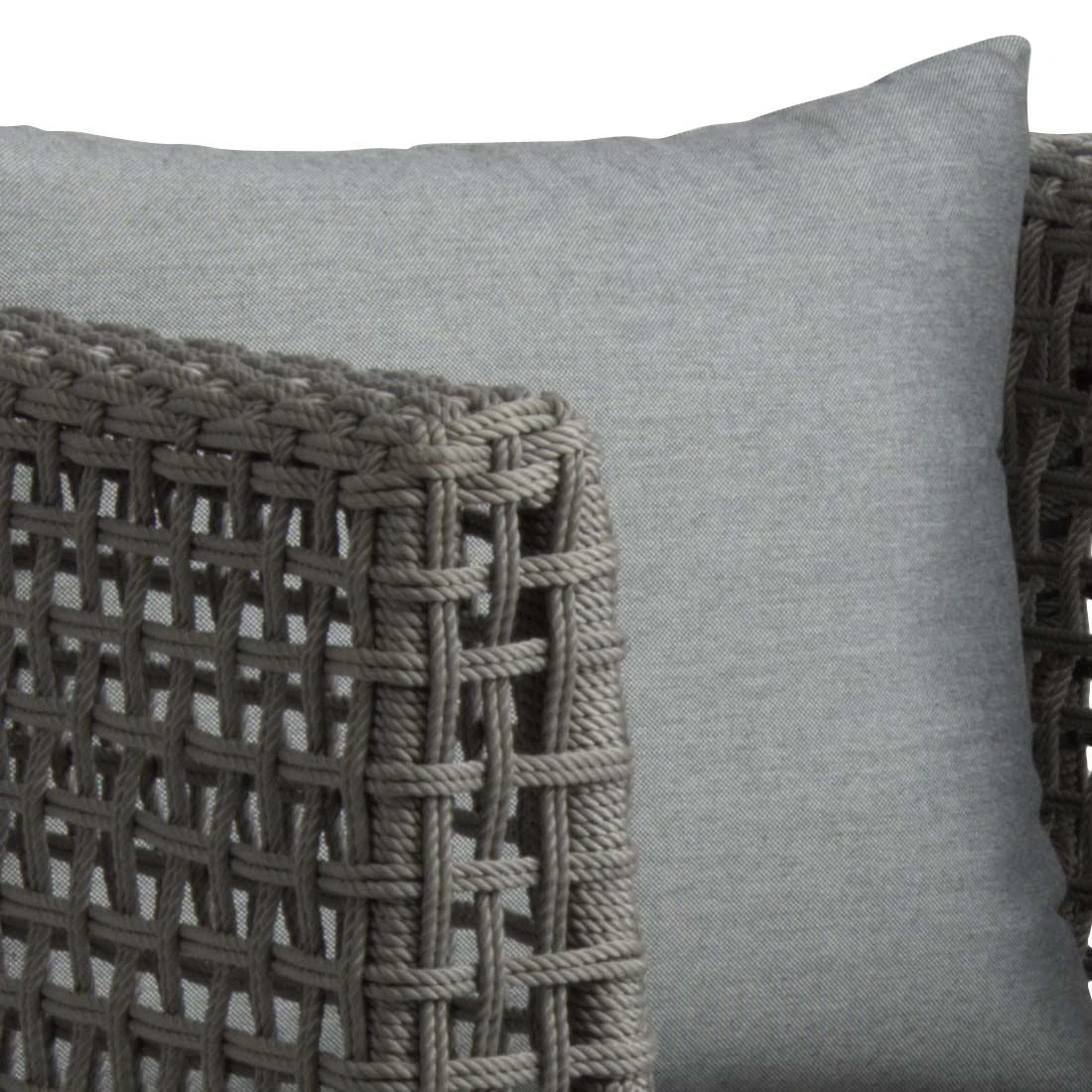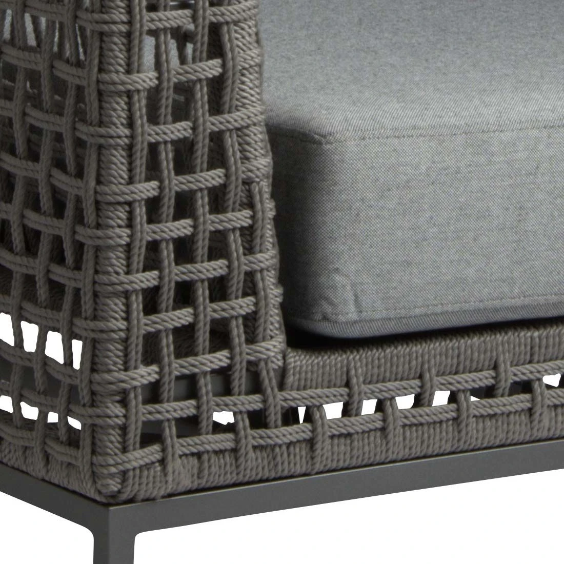 Das Gestell wird aus Aluminium in der Farbe Anthrazit gefertigt. Das geringe Eigengewicht des Materials macht den Loungesessel zu einem robusten, aber dennoch leicht zu transportierenden Sitzmöbel auf Ihrer Terrasse. Hochwertiges Rope umgibt das robuste Gestell und verleiht dem Loungesessel damit einen ganz besonderen Look.