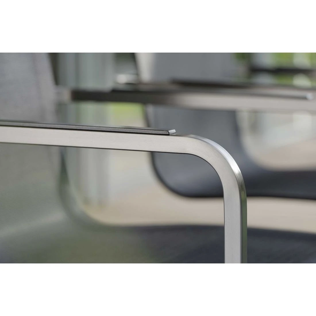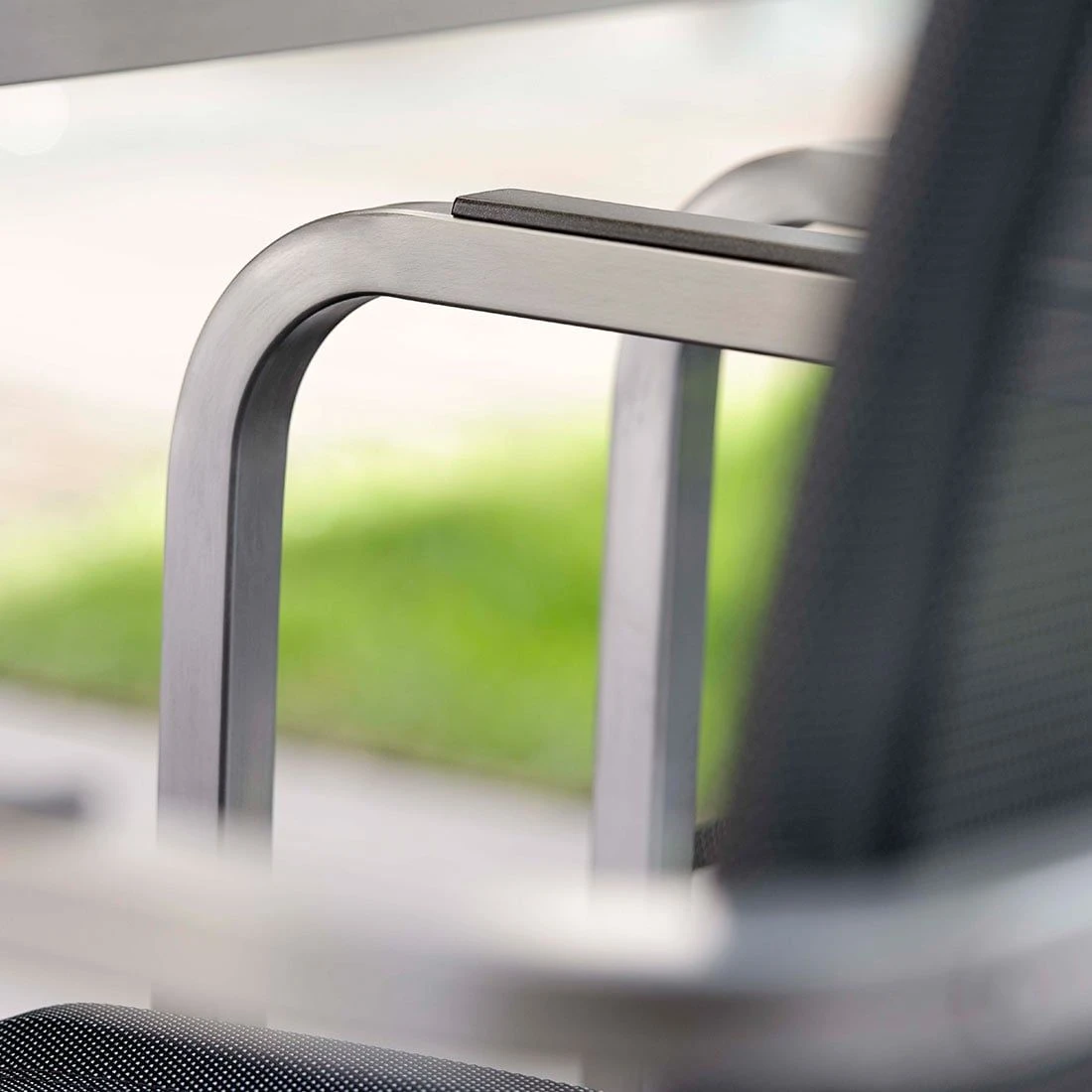Das Gestell wird aus hochwertigem und rostfreiem Edelstahl hergestellt. Aufgrund des etwas höheren Eigengewichts, steht der Freischwinger dadurch besonders stabil und windsicher auf der Terrasse.