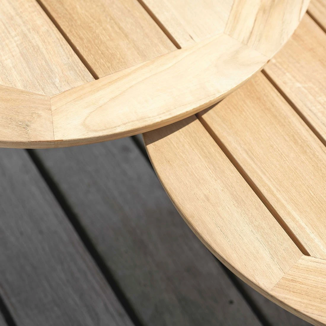 Das Gestell des attraktiven Tisches ist aus Aluminium hergestellt. Ein Tischgestell in Dreibeinform zeichnet sich durch seine hohe Stabilität aus. Durch die drei Beine wird das Gewicht des Tisches gleichmäßig auf den Boden verteilt, was ihm eine solide Standfestigkeit verleiht. Die Platte des Tisches ist aus edlem Teakholz gefertigt. Aufgrund des sehr hohen natürlichen Ölanteils ist sie bereits von Haus aus hervorragend vor Witterungseinflüssen geschützt. Farblich ist die Platte in Natur gehalten. Der Beistelltisch ist in seiner Form klassisch rund gefertigt.