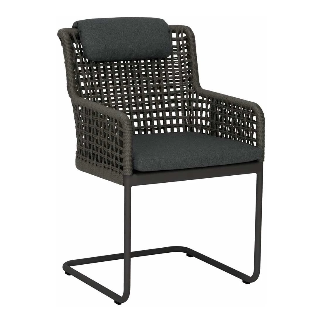 Für die Herstellung des Gestells wird hochwertiges und wetterfestes Aluminium verwendet. Farblich ist dieses in Anthrazit gehalten. Hochwertiges Rope umgibt das robuste Gestell und verleiht dem Freischwinger damit einen ganz besonderen Look.