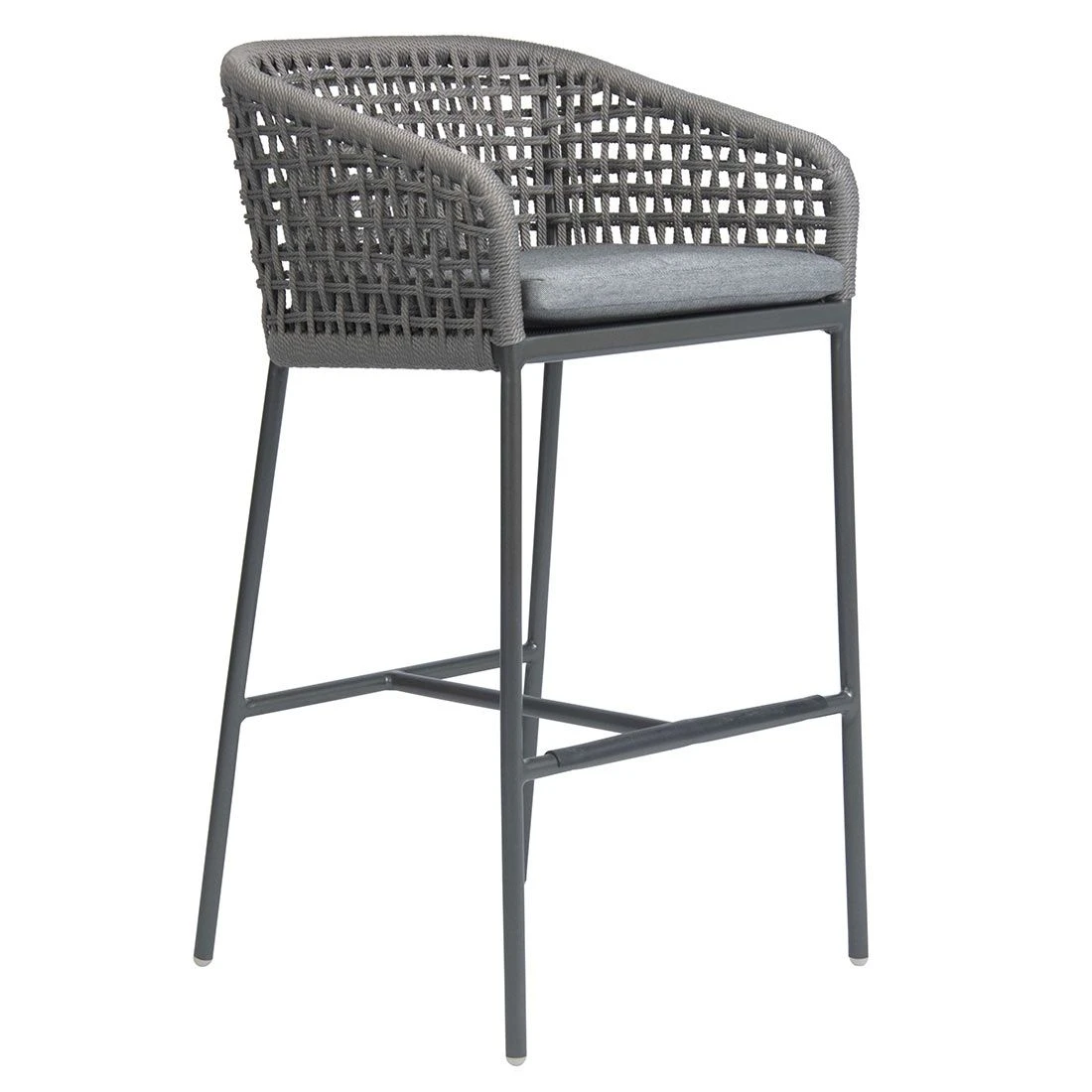 Für die Herstellung des Gestells wird hochwertiges und wetterfestes Aluminium verwendet. Für eine attraktive Optik ist das Gestell im Farbton Anthrazit gehalten. Hochwertiges Rope umgibt das robuste Gestell und verleiht Garten-Barstuhl damit einen ganz besonderen Look. Als hochwertiges Material für die Bezüge kommt ein Polyacryl-Stoff zum Einsatz. Er ist sehr strapazierfähig und bietet somit die idealen Voraussetzungen für den Einsatz im Freien. Damit Garten-Barstuhl optisch ansprechend ist, sind die Sitzfläche und der Bezug im Farbton Seidengrau gehalten.