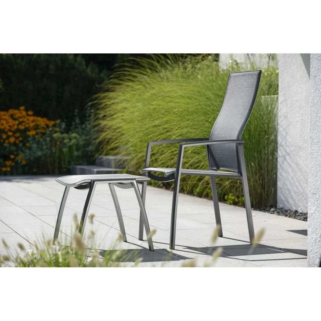 Ein weiterer Pluspunkt des Gartenhockers ist die Bespannung mit Textilene. Dieser Bezugsstoff überzeugt durch eine hohe Robustheit gegenüber Hitze und Frost aus und ist leicht zu reinigen. Der hohe Sitzkomfort ergibt sich auch aus der Sitzbreite von 49 cm und einer Sitztiefe von 46 cm. Unterstützt wird dies zudem durch die bequeme Sitzhöhe von 44 cm.