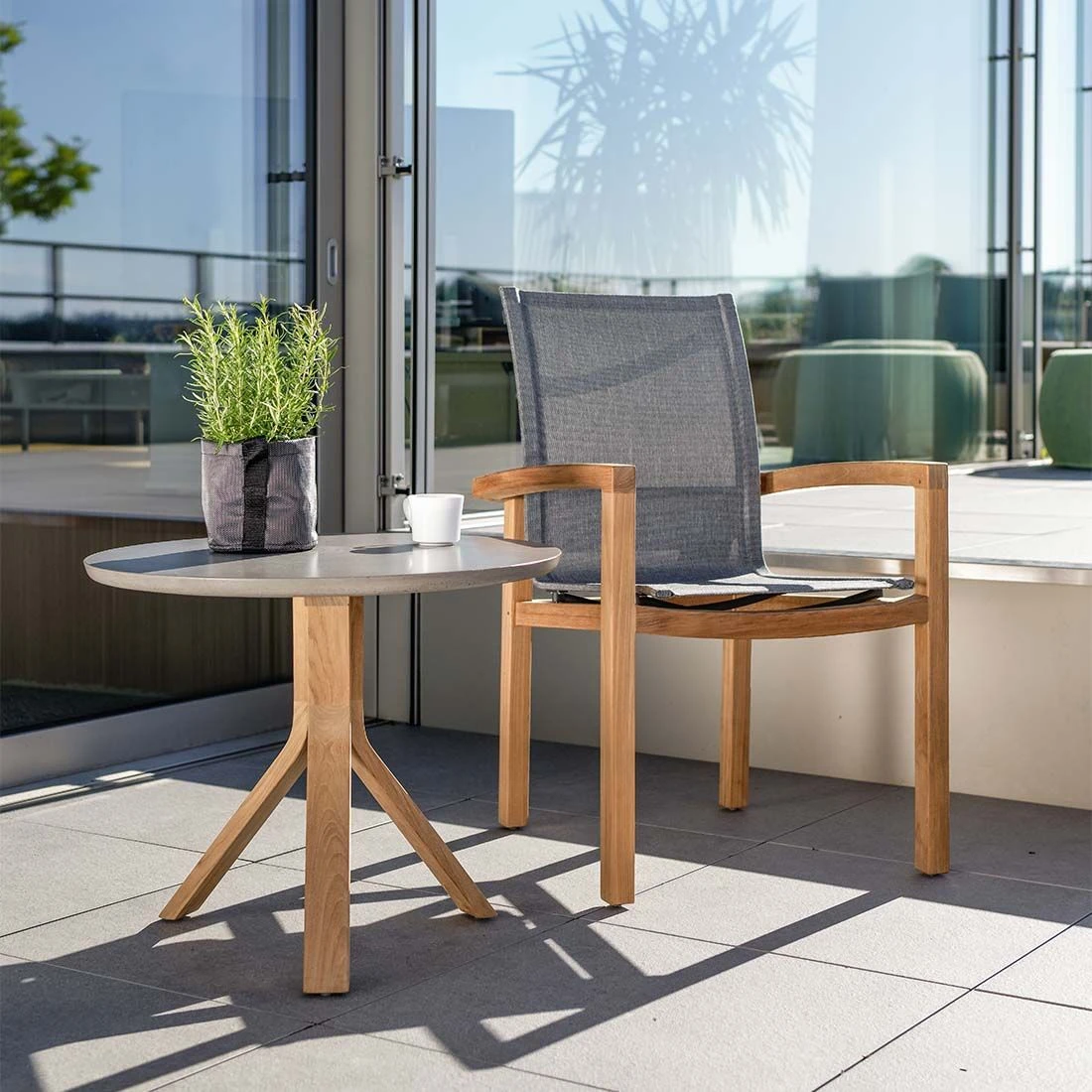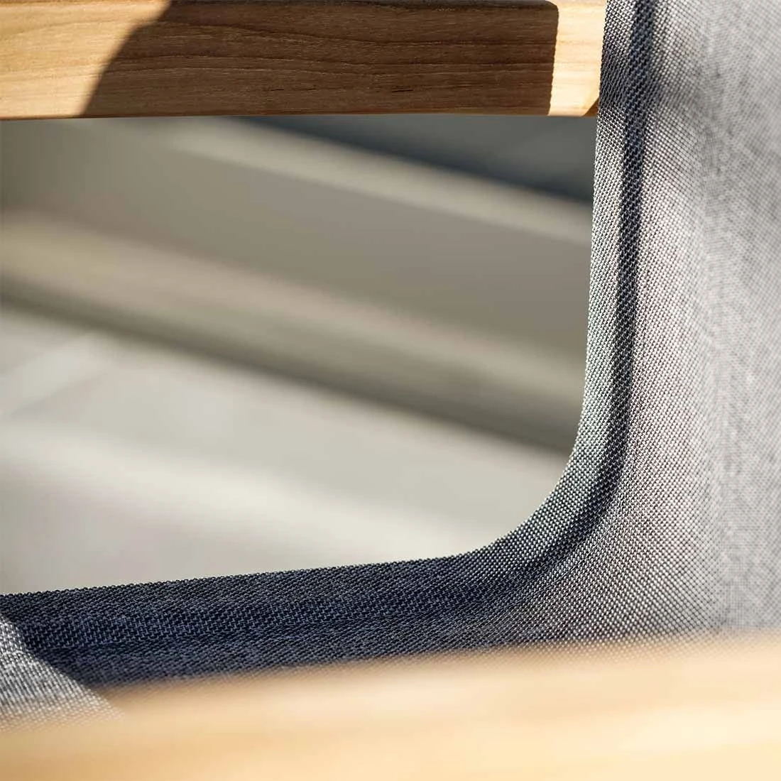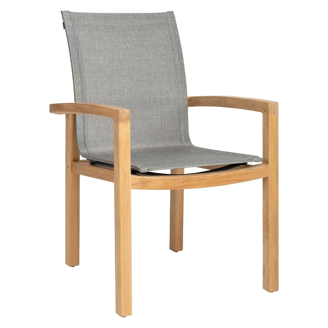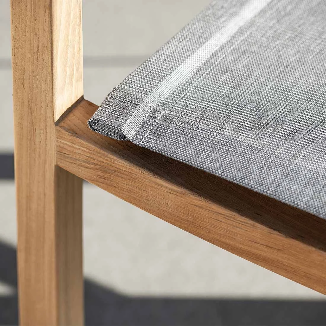 Das Gestell wird aus Teakholz gefertigt und bringt ein natürliches Flair auf Ihre Terrasse. Für eine attraktive Optik ist das Gestell im Farbton Braun gehalten. Ein weiterer Pluspunkt des Gartensessels ist die Bespannung mit Textilene. Dieser Bezugsstoff überzeugt durch eine hohe Robustheit gegenüber Hitze und Frost und ist leicht zu reinigen. Die Sitzfläche hat eine attraktive Farbgebung in Leinen Grau.