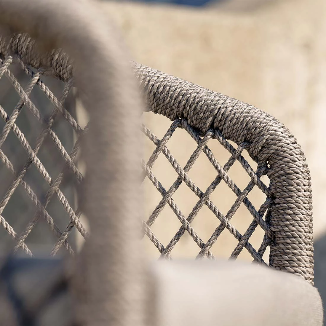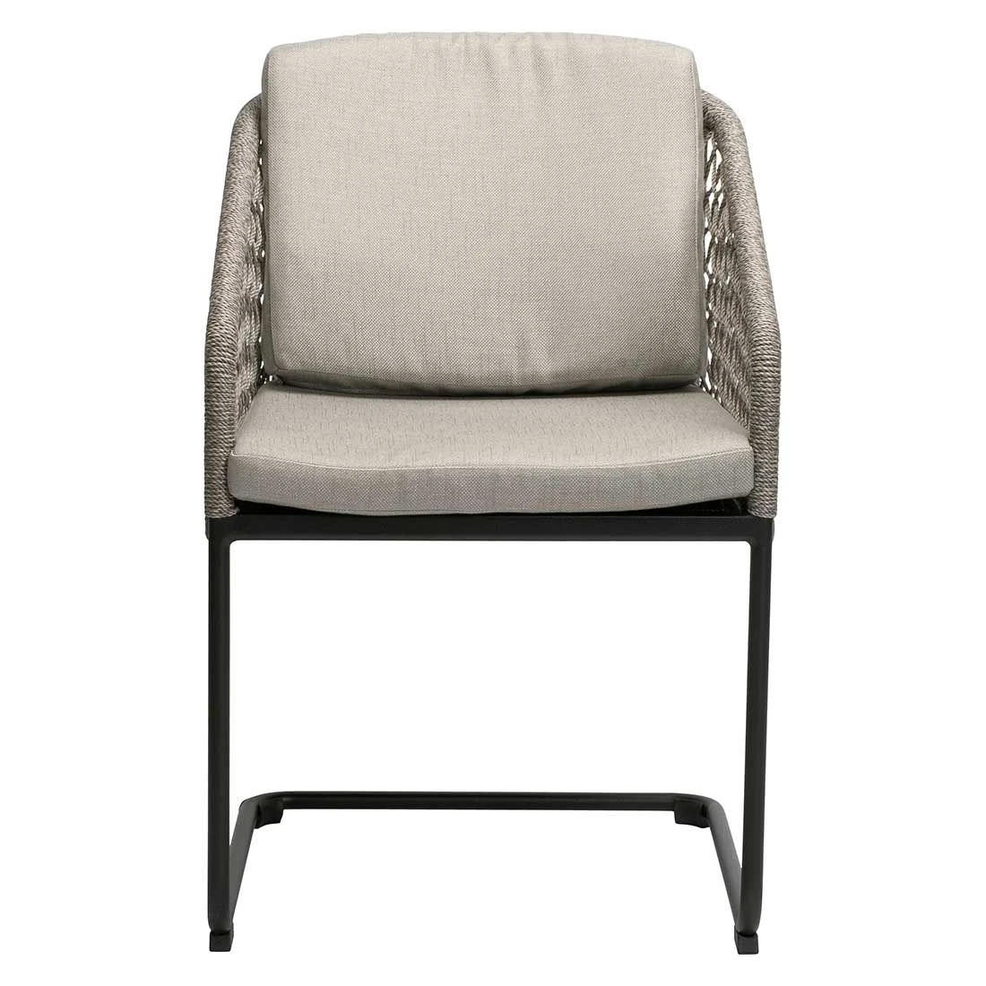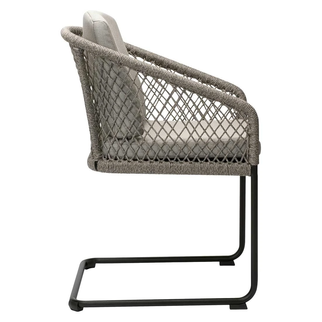 Für die Herstellung des Gestells wird hochwertiges und wetterfestes Aluminium verwendet. Farblich ist dieses in Schwarz Matt gehalten. Hochwertiges Rope umgibt das robuste Gestell und verleiht dem Freischwinger damit einen ganz besonderen Look.