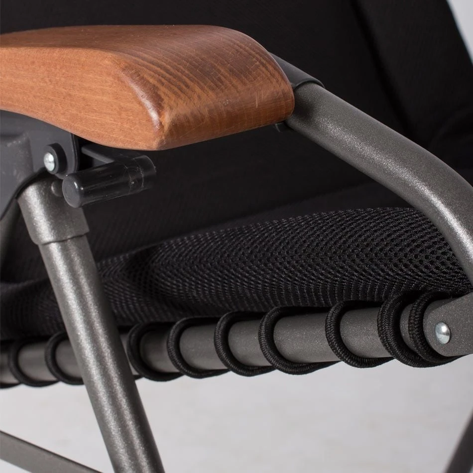Das Gestell wird aus Stahl gefertigt und sorgt damit für stabilen Halt beim Sitzen. Farblich ist dieses in Anthrazit gehalten. Die Sitzfläche hat eine elegante Farbgebung in Schwarz. Der Korpus und die Sitzfläche sind aus Textilene gefertigt.