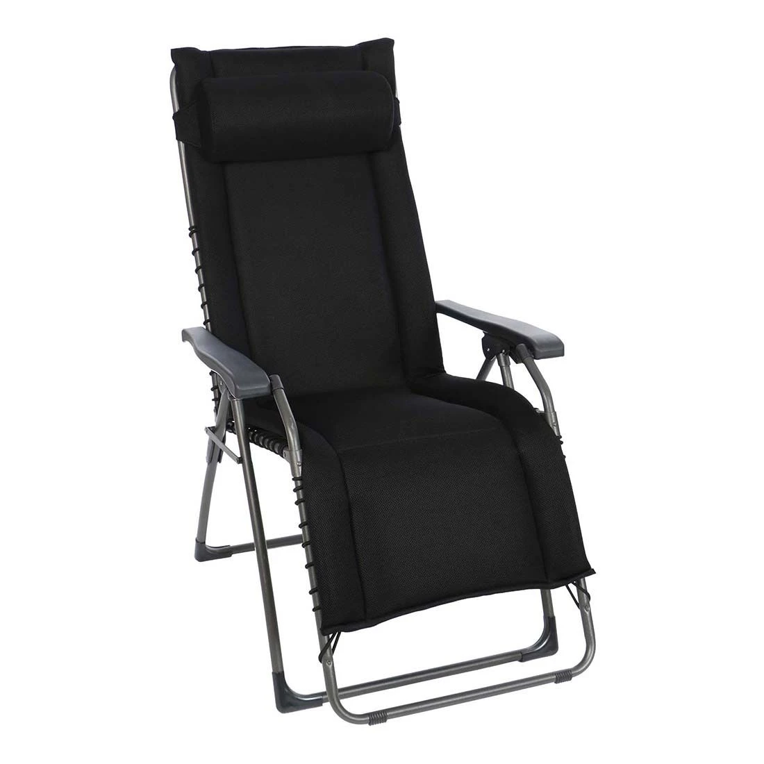 Für die Herstellung des Gestells wird hochwertiges und wetterfestes Aluminium verwendet. Für eine attraktive Optik ist das Gestell im Farbton Anthrazit gehalten. Für die Bespannung der Sitzfläche wird hochwertiges Textilene verwendet. Es zeichnet sich durch eine hohe Robustheit gegenüber Hitze und Frost aus und ist leicht zu reinigen. Die Sitzfläche ist in ansprechendem Schwarz gehalten.