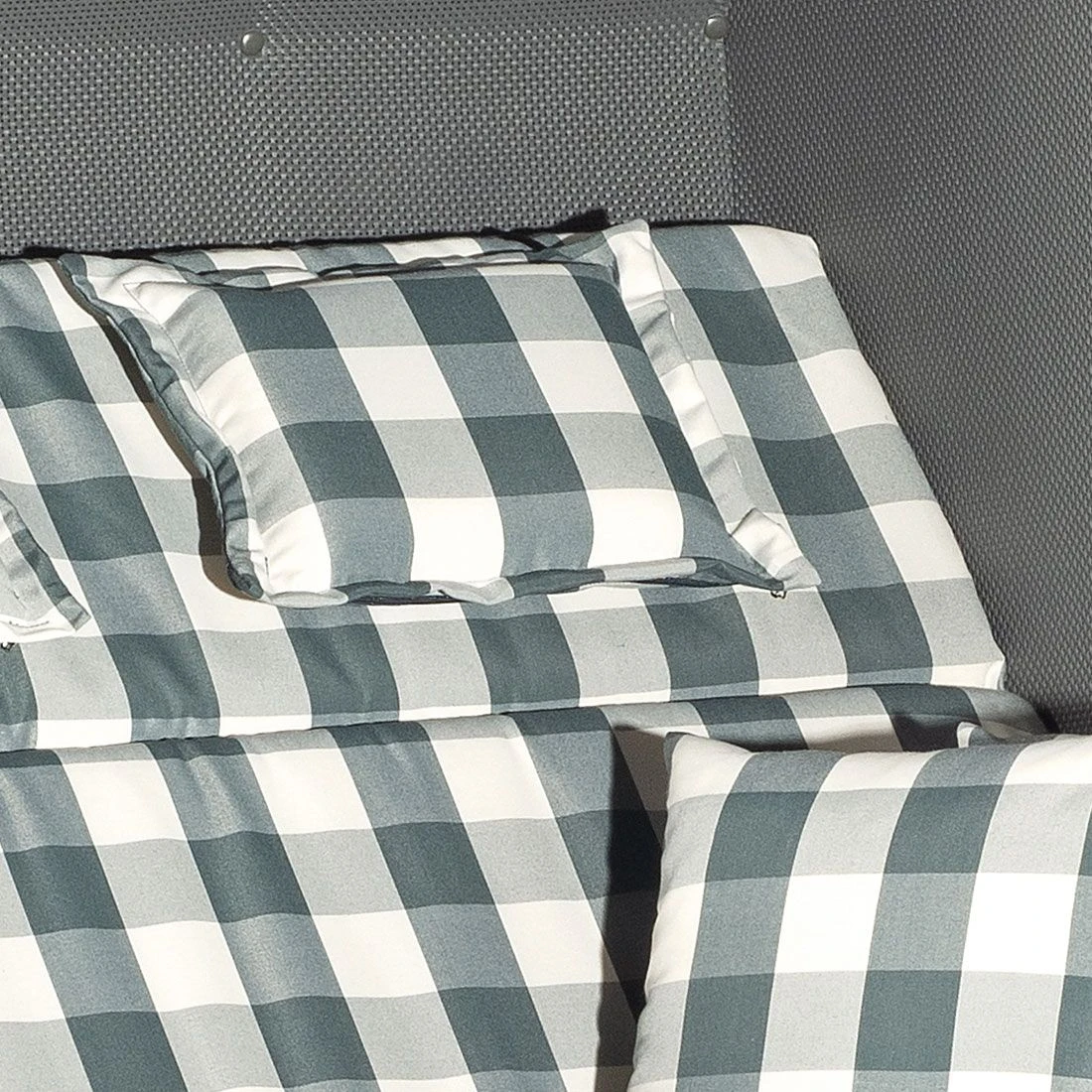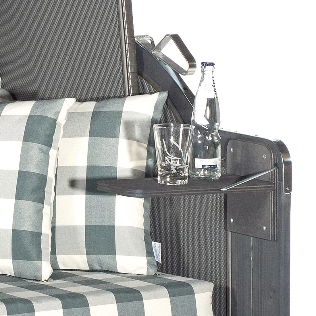 Die Bezüge des Strandkorbs bestehen aus Strukturpolyester-Gewebe. Das Material überzeugt mit einer angenehmen Haptik und einer hohen Witterungsbeständigkeit. Der Strandkorb selbst besteht aus Fichtenholz sowie Kunststoffgeflecht. Beides harmoniert hervorragend miteinander. Das Grundgerüst des Strandkorbs ist in Anthrazit gehalten. Darüber hinaus überzeugt der Strandkorb Sunny Smart mit seinem Kunststoffgeflecht im Farbton Anthrazit.