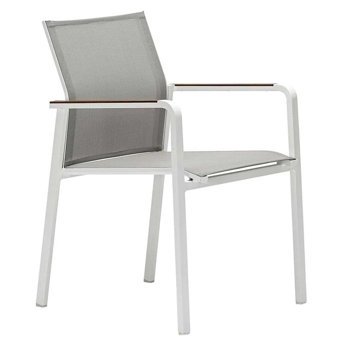 Damit der Stapelsessel optisch ansprechend ist, sind die Sitzfläche und der Bezug im Farbton Light Grey gehalten. Das Gestell wird aus Aluminium gefertigt. Das geringe Eigengewicht des Materials macht den Stapelsessel zu einem robusten, aber dennoch leicht zu transportierenden Sitzmöbel auf Ihrer Terrasse. Für eine attraktive Optik ist das Gestell im Farbton Weiß gehalten. Ein weiteres Highlight des Stapelsessels ist die Bespannung mit Textilene in der Farbe Light Grey. Dieser Bezugsstoff überzeugt durch eine hohe Robustheit gegenüber Hitze und Frost und ist leicht zu reinigen.