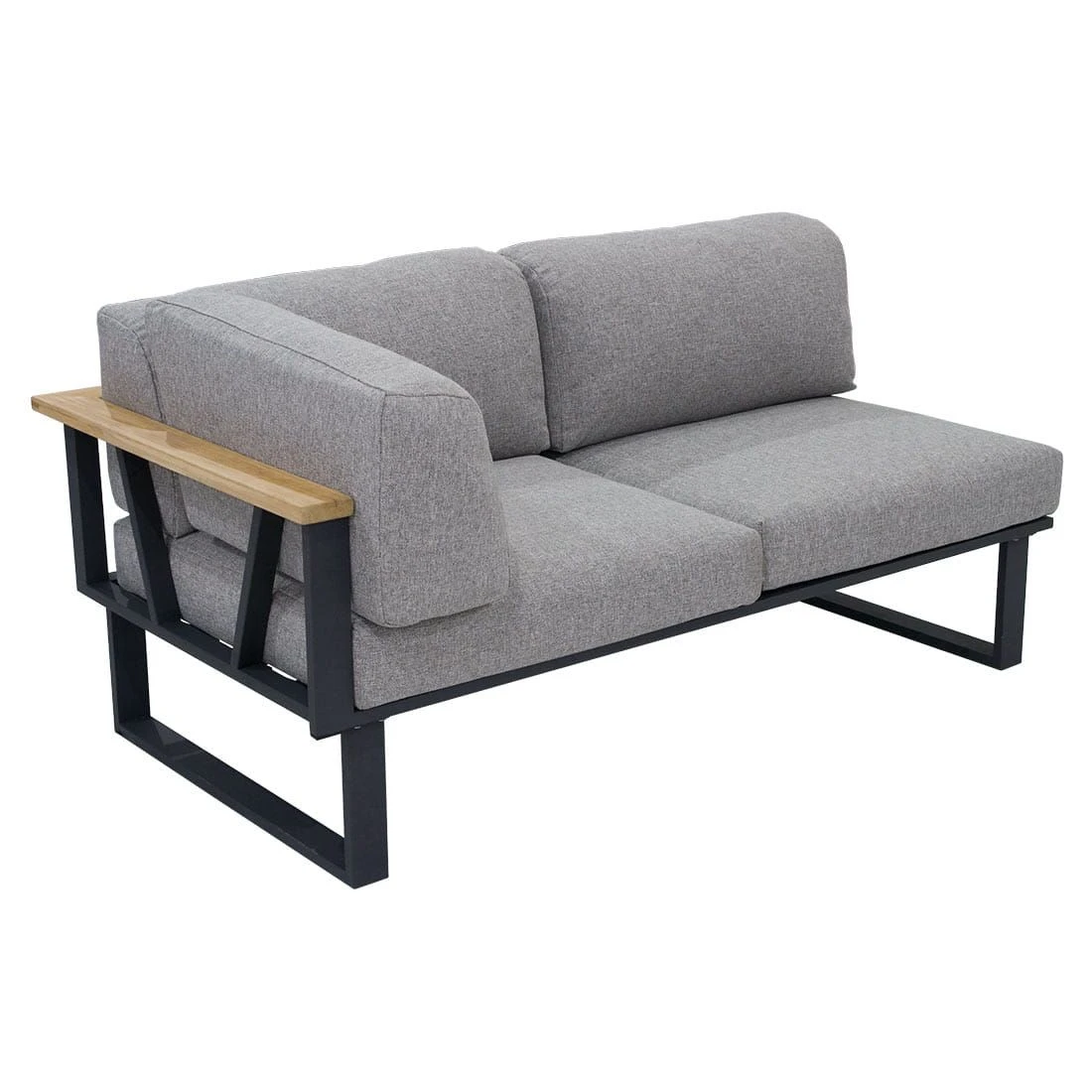 Aufgrund des etwas höheren Eigengewichts, steht das Eck-/Endmodul mit seinem Gestell aus hochwertigem Edelstahl besonders stabil und windsicher auf der Terrasse. Optisch begeistert das Gestell in der Farbe Graphit. Die Sitzfläche wurde aus Tuvatextil – einem spanischen Outdoorstoff – gefertigt. Das Material ist durch eine zusätzliche Beschichtung besonders wasserabweisend, schnelltrocknend und UV-beständig. Zugleich bietet der Stoff eine angenehme Haptik und Komfort.