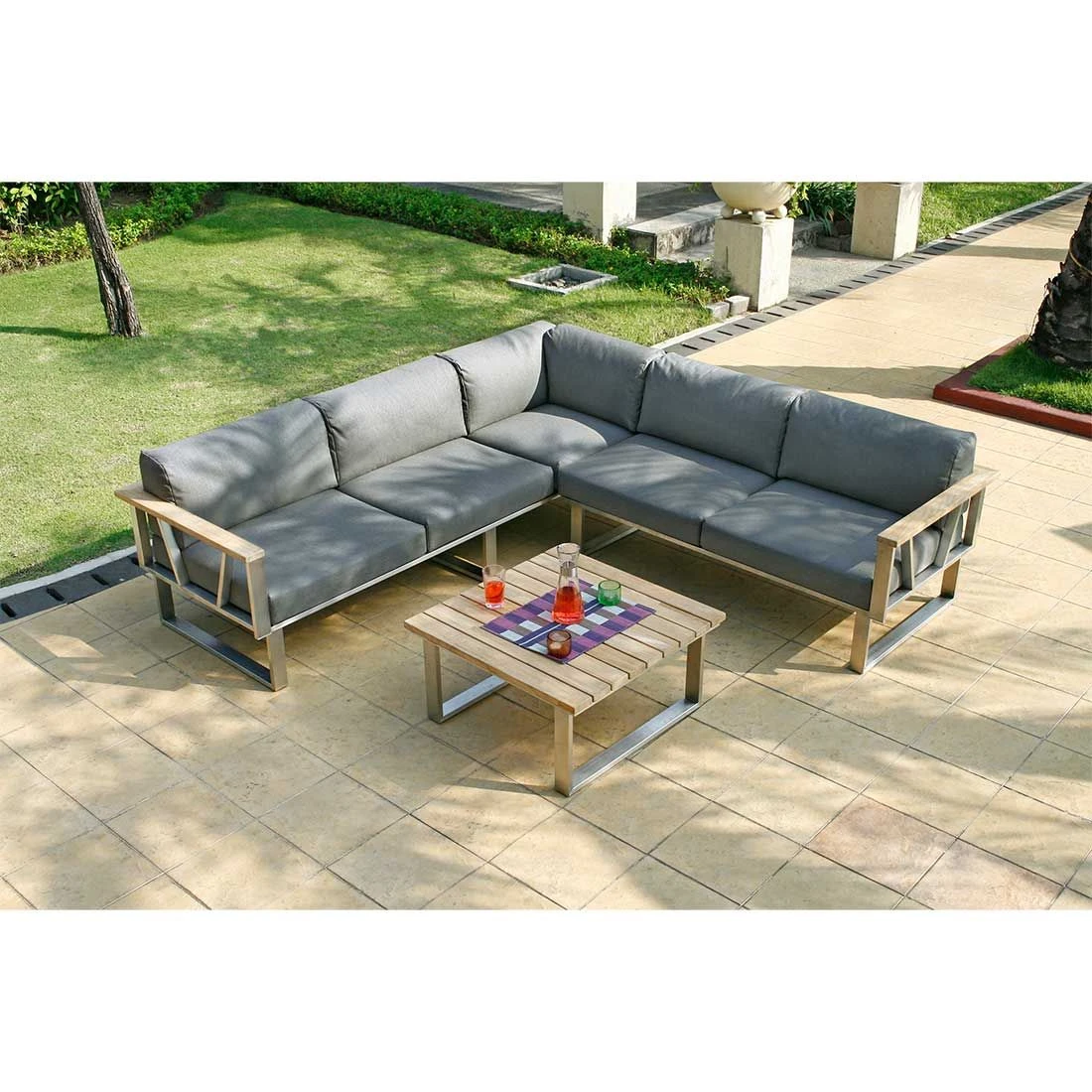 Das Gestell ist aus hochwertigem, rostfreiem Edelstahl hergestellt. Durch das etwas höhere Eigengewicht steht der Loungetisch besonders stabil und windsicher auf der Terrasse. Optisch begeistert das Gestell in der Farbe Silber. Teakholz ist extrem widerstandsfähig gegen Witterungseinflüsse wie Temperaturschwankungen, Nässe und Trockenheit. Kein Wunder, dass das hochwertige Holz als Material für die Tischplatte gewählt wurde. Die Tischplatte ist Teak.