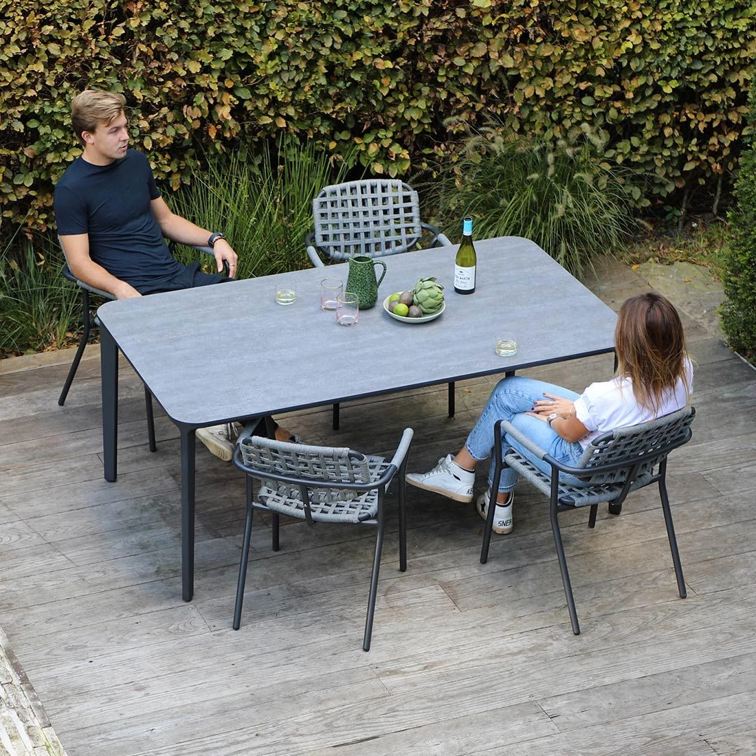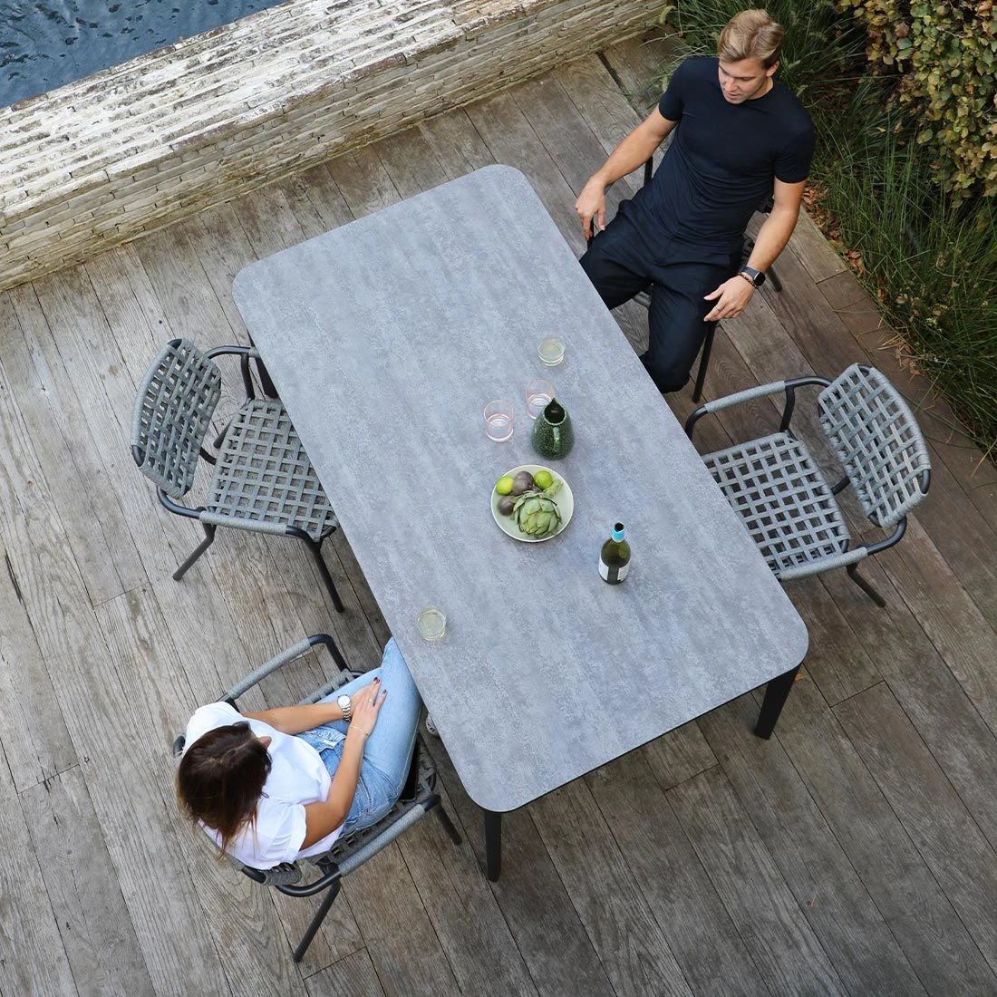 Das Gestell wird aus Aluminium (pulverbeschichtet) gefertigt. Die stylische Rope-Bespannung, die das Sitzmöbel-Gestell aus Aluminium (pulverbeschichtet) umgibt, rundet das Gesamtbild des Sets stilvoll ab.