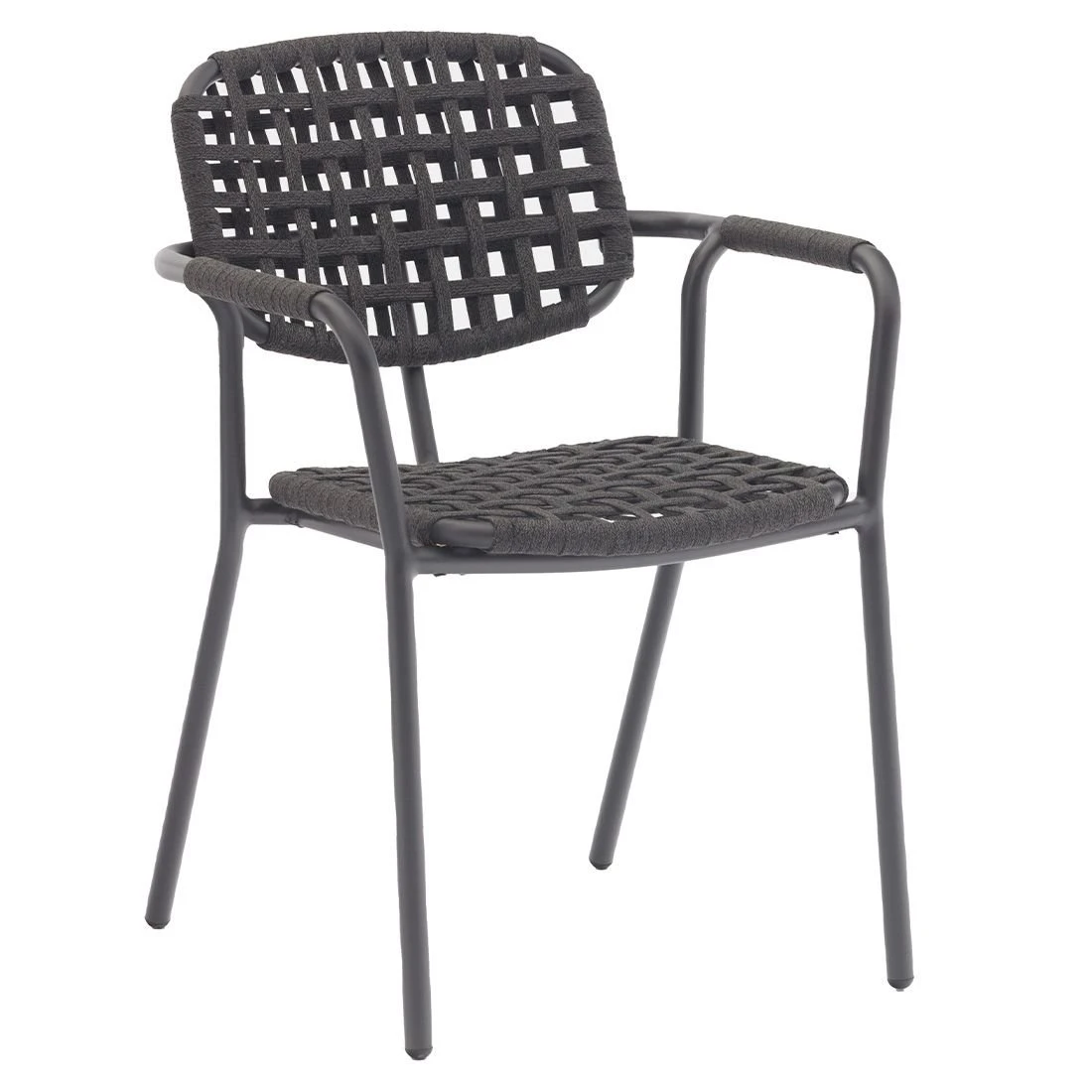 Für die Herstellung des Gestells wird hochwertiges und wetterfestes Aluminium verwendet. Farblich ist dieses in Graphit gehalten. Die Sitzfläche wird aus moderner Rope-Bespannung gefertigt. Das Gestell besticht mit seinen attraktiven Kufen. Besonders praktisch: Aufeinander gestapelt können auch mehrere Exemplare des Stapelsessels platzsparend aufbewahrt werden. Die Sitzfläche hat mit 45 cm eine komfortable Höhe.