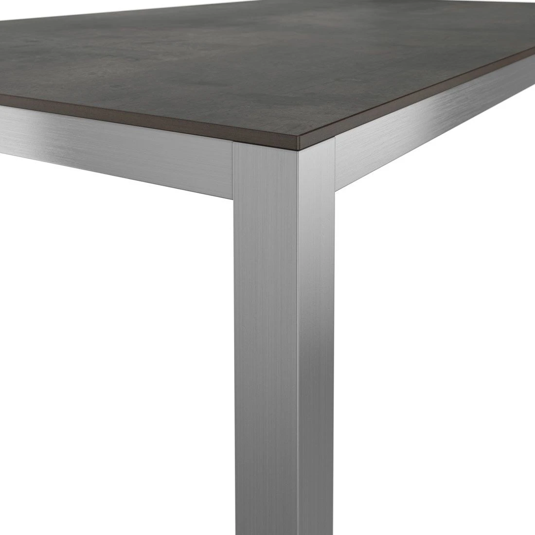 Die robusten Edelstahlgestelle sorgen für eine hohe Stabilität und Tragfähigkeit. Darüber hinaus begeistern diese mit einem zeitlos eleganten Look. Optisch ansprechend ist die Farbgebung der Gestelle in Silber. Ein weiterer Pluspunkt der Sitzmöbel ist die Bespannung der Sitzflächen mit Textilene. Dieses Material zeichnet sich durch eine hohe Robustheit gegenüber Hitze und Frost aus und ist leicht zu reinigen. Zum Lieferumfang des Sets gehört auch ein praktischer Tisch. Dessen robuste und kratzfeste Tischplatte aus leicht zu pflegendem HPL-Kunststoffverbund ist gerade für den Einsatz unter freiem Himmel und Mahlzeiten draußen besonders gut geeignet. Mit der rechteckigen Form lässt sich der Tisch platzsparend in Ecken oder an Häuserwänden aufstellen. Als klassische Design-Komponente fungiert das geradlinige Vierfußgestell. Passend zum Gesamtbild des Gartenmöbel-Sets begeistert die Tischplatte mit ihrer Farbgebung in Zement Dunkel, während das Gestell in Silber gehalten ist.