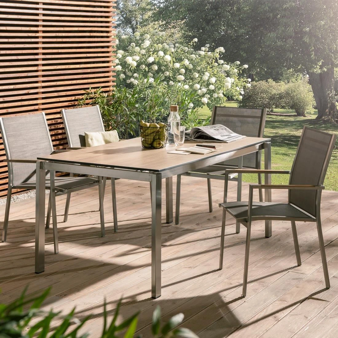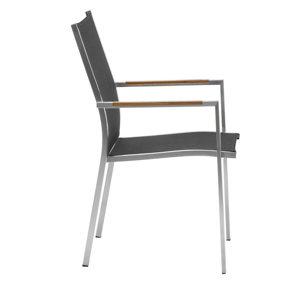 Für die Bespannung der Sitzfläche verlässt sich der Hersteller auf hochwertiges Textilene. Es zeichnet sich durch eine hohe Robustheit gegenüber Hitze und Frost aus und ist leicht zu reinigen. Ihr Vorteil: Die Stapelbarkeit des Modells One ermöglicht es Ihnen, auch mehrere Exemplare platzsparend aufzubewahren. Der Stapelsessel ist bis zu einem Gewicht von 120 kg belastbar. Der hohe Sitzkomfort ergibt sich auch aus der Sitzbreite von 43 cm und einer Sitztiefe von 45 cm. Unterstützt wird dies zudem durch die bequeme Sitzhöhe von 44,5 cm.